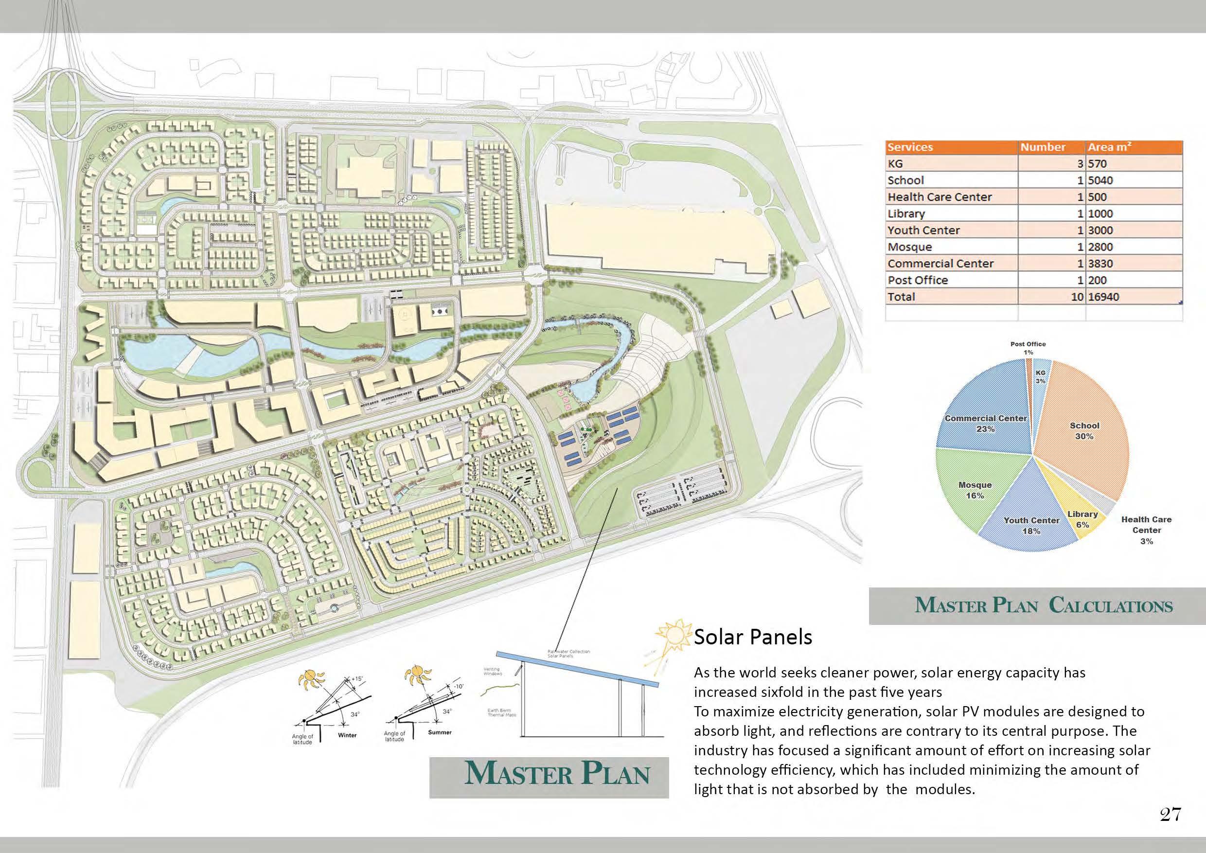 Anglo of attluc!e MAsTERPLAN Services KG Schoo l Healt h ca re Center Li b r ary Youth Cen t er Mosque Comme r c i a l Cente r Post O ff i ce To t a l Number I P ost Offiee 1% Area m 2 3 570 15040 1500 11000 1 3000 12800 1 3830 1 200 10 16940 Health Care Center 3 %