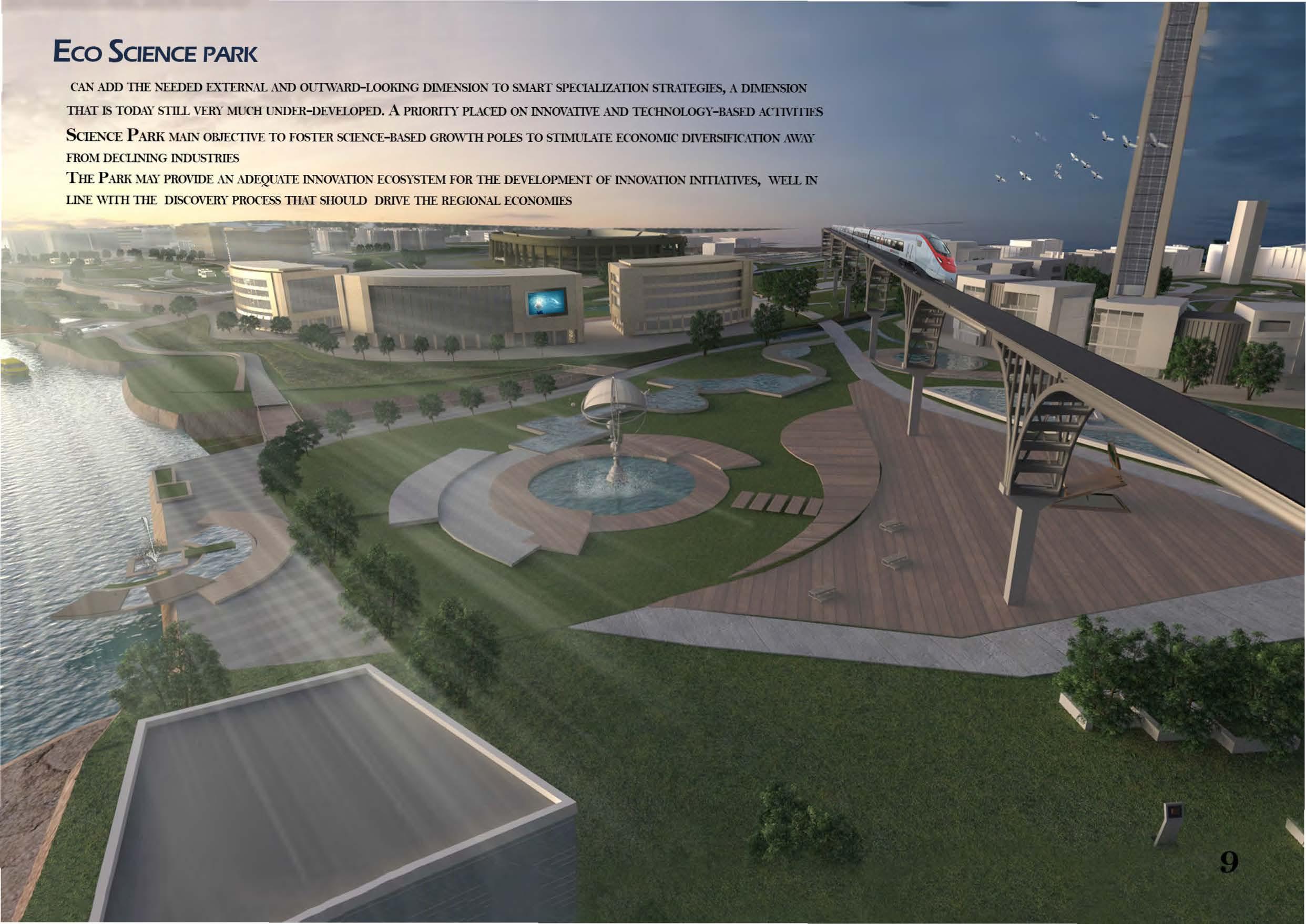 EcoSciENCEPARI< CAN ADD TilE NEEDED EXTERNAL AND OUI\VARD-LOOKING DIMENSION TO SMART SPEC1ALIZATION STRATEGIES, A DI:\IENSION THAT IS TODAY STILL VERY MUCH UNDER DEVELOPED. A PRIORITY PLACED ON INNOV.-ITIVE fu'ID TECHNOLOGY BASED ACTIVITIES SCIENCE pARK MAIN OBJECTIVE TO FOSTER SCIENCE BASED GROWTH POLES TO STIMULATE ECONOMIC DIVERSIFICATION AWAY FROM DECLINING INDUSIRIES THE p ARK MAY PROVIDE AN ADEQU ITE INNOVATION ECOSYSTEM FOR TilE DEVELOPMR.rr OF INNOVATION INITIATIVES, WELL IN LThl£ WITH TilE DISCOVERY PROCESS THAT SHOULD DRIVE TilE REGIONAL ECONOMIES