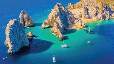 Located at the tip of the 800-mile long Baja California peninsula, Cabos San Lucas has the Sea of Cortez on one shore and the Pacific Ocean on the other.
