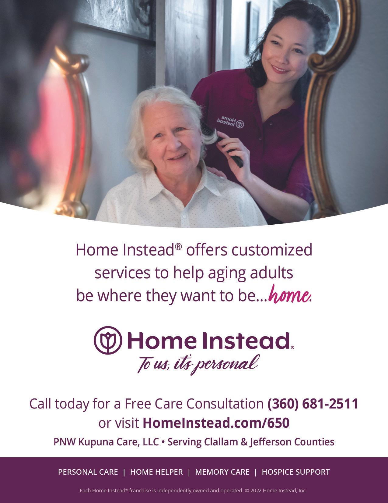 LET OUR FAMILY TAKE CARE OF YOURS SKILLED NURSING & SHORT-TERM REHABILITATION @calderacare www.calderacare.com www.sequimnursing.com Health and Rehabilitation Center SEQUIM 650 W Hemlock St Sequim, WA 98382 360.582.2400 A CALDERA CARE COMMUNITY 1116 East Lauridsen Blvd. Port Angeles, WA 98362 www.olympicviewcare.com @olympicviewcare Skilled Nursing and Rehabilitation 360.452.9206