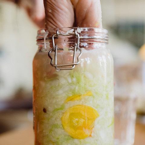 Hvordan tar vi vare på maten vår? – om fermentering av grønnsaker, sopp og tang Kvelden starter med en varmende suppe og spennende tilbehør laget av grønnsaker fra den nye Dyrkingshagen på Rød. Underveis snakker vi om hvordan vi selv kan lage deilig suppekraft og bruke melkesyregjæring (fermentering) for å ta vare på grønnsaker, sopp og tang gjennom vinteren. Vi vil også si litt om de magiske melkesyrebakterienes betydning for helse – både i jord, planter, dyr og oss selv.