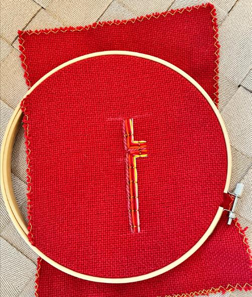 Vil du være med å brodere ny alterduk til Greåker kirke? På bildet til høyre ser du teknikken som skal brukes, og det er ikke vanskelig. Dette er et fellesskapsproskekt. Det er samlet inn trådrester i disse fargene, men har du noen liggende kan vi bruke mer. Duken skal innvies på 1. pinsedag. Vi samles i kirken 21. mars kl 10–14. Kontaktperson er Siw Libby, tlf 469 73 090, om du lurer på noe.