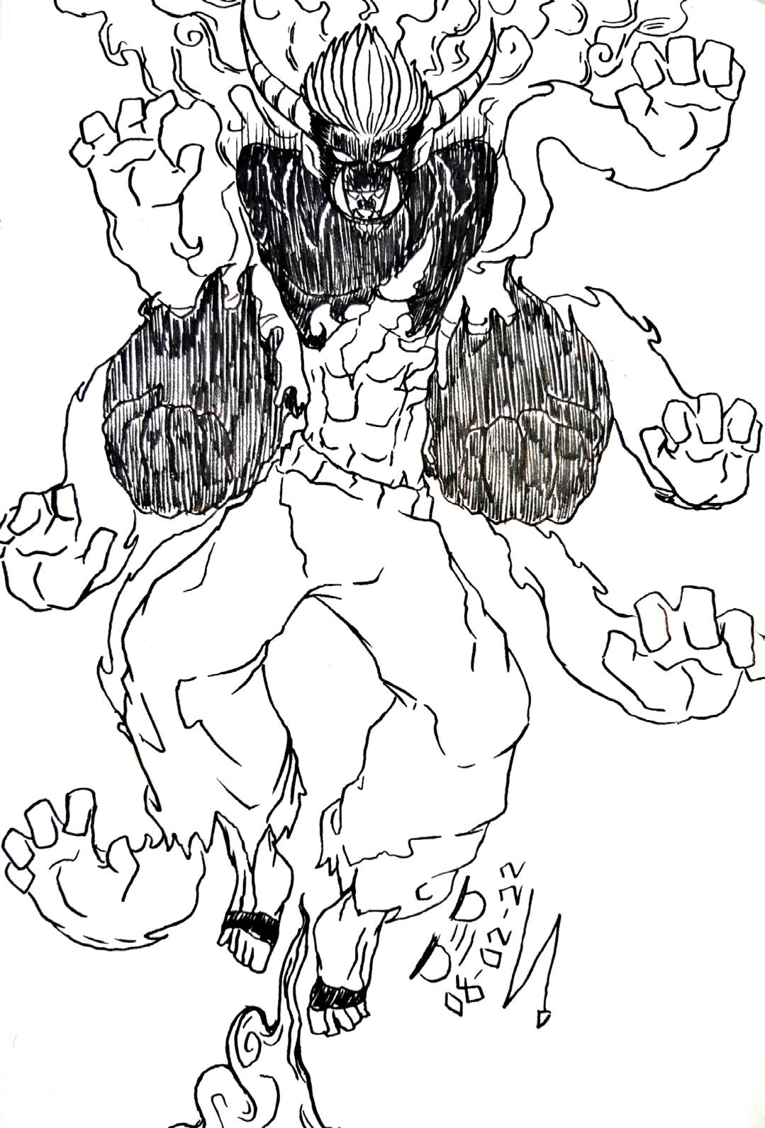 Finalmente, el detalle de las tres líneas entre los ojos hace referencia a un tipo de sombreado usado en el manga, para personajes extraños o tétricos.