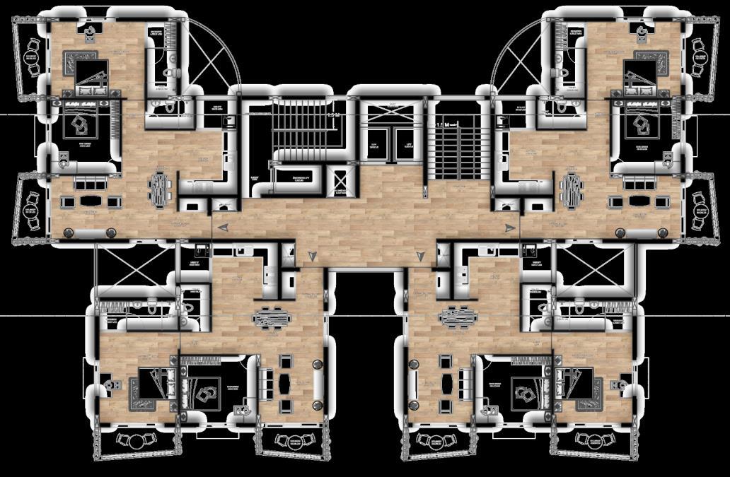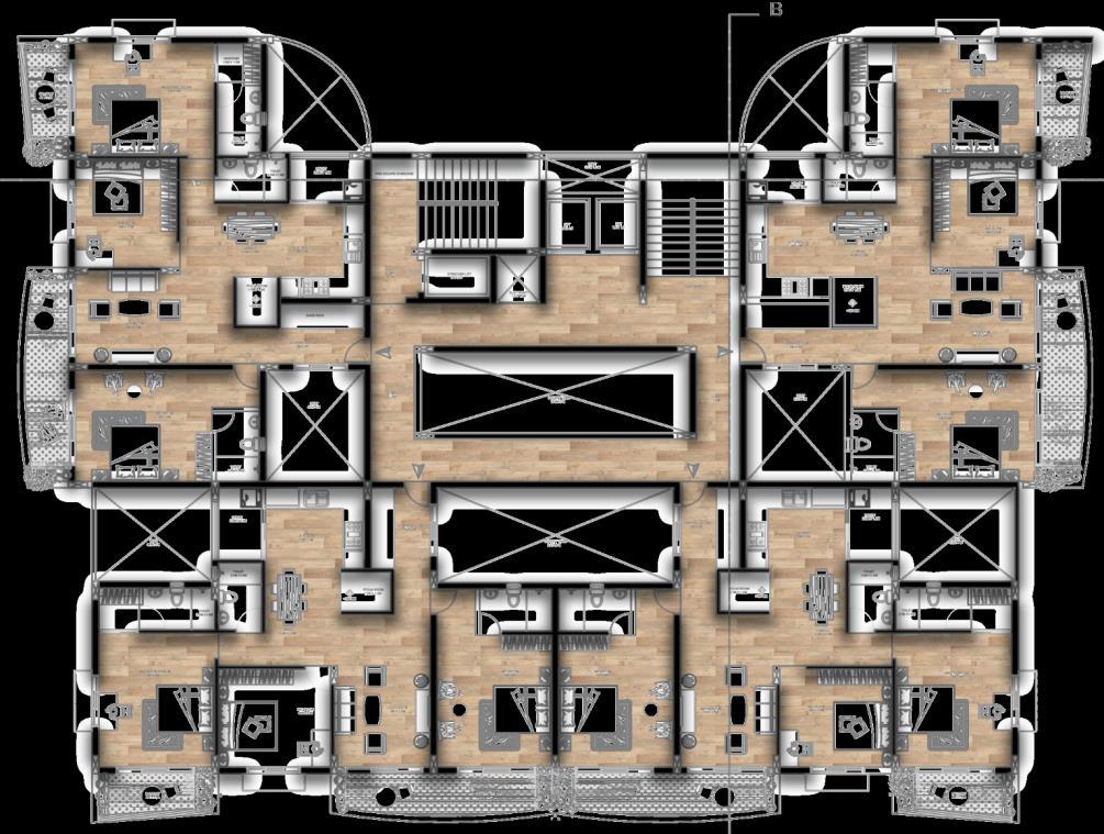 • GLASS FACADE PROVIDED TO FACING THE APARTMENT TOWARDS A QUIET GREEN AREAS,