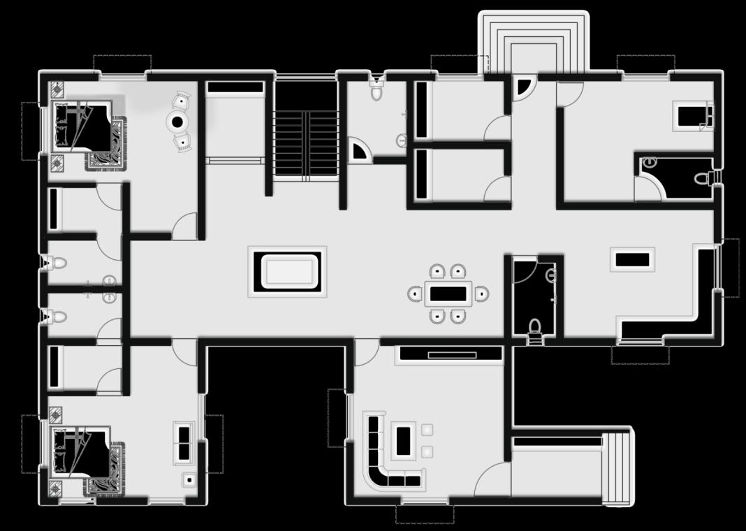 ROOM 1.CHILDREN ROOM 2.SITTING 3.OPEN TERRACE 4.DANCE STUDIO 5.M. BEDROOM 6.BEDROOM
