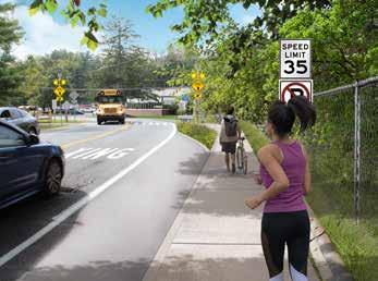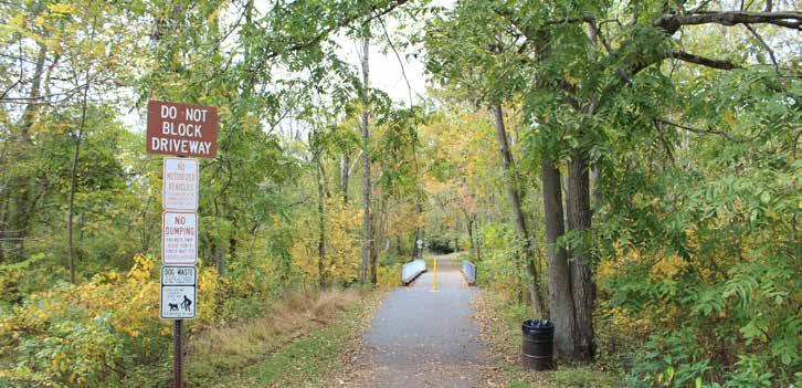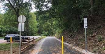 • Establish safe crossings, bump-outs, signage, and trail amenities at the interface of trails with roadways and/or public spaces