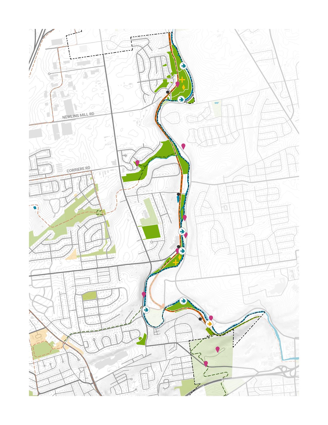 The plan considers the various ways that users and residents access the Greenway, and offers recommendations for improved access and multimodal circulation: