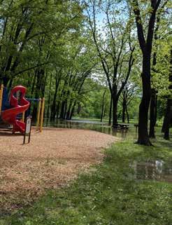 The Township performs monthly inspections for play structures and addresses issues immediately. ADAaccessible equipment is integrated, and the Township typically replaces equipment every 10 to 15 years. Mulch that washes away in floods and is dispersed throughout parks (particularly at Penn Pump Park) is an ongoing drain of resources for cost and labor. This could be avoided by raising play areas out of the floodplain, as well as providing permanent playground safety surfacing.