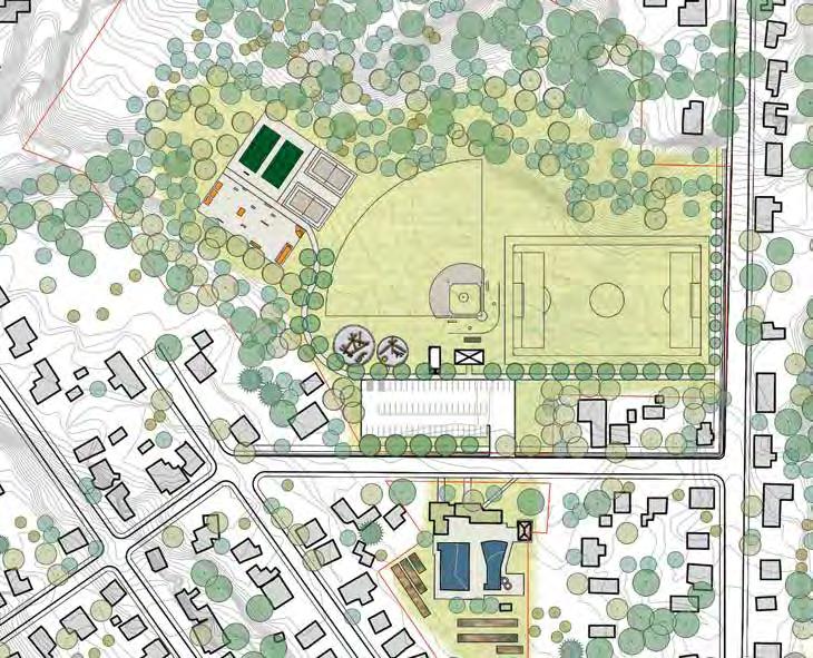 183 RECOMMENDATIONS N EW MYERS POOL N EW ALLEE AND PARK ENTRY R ECONFIGURED PARKING R ELOCATED TENNIS COURTS B ASKETBALL COURT U NIVERSALLY ACCESSIBLE PLAY S TORAGE & PUBLIC BATHROOMS R ECONFIGURED SKATE PARK E ARTH BERM WALKING LOOP T WO YOUTH SOCCER FIELDS VOLLEYBALL COURT O PEN-AIR PAVILION R ELOCATED SOFTBALL FIELD N EW SIDEWALK AND TREES 2 2 10 10 4 4 12 12 5 135 13 6 6 1415 1514 7 7 8 8 3 3 11111 9 9 1 DESIGN OPTION C: RELOCATED SOFTBALL FIELD (21% SURVEY VOTES)