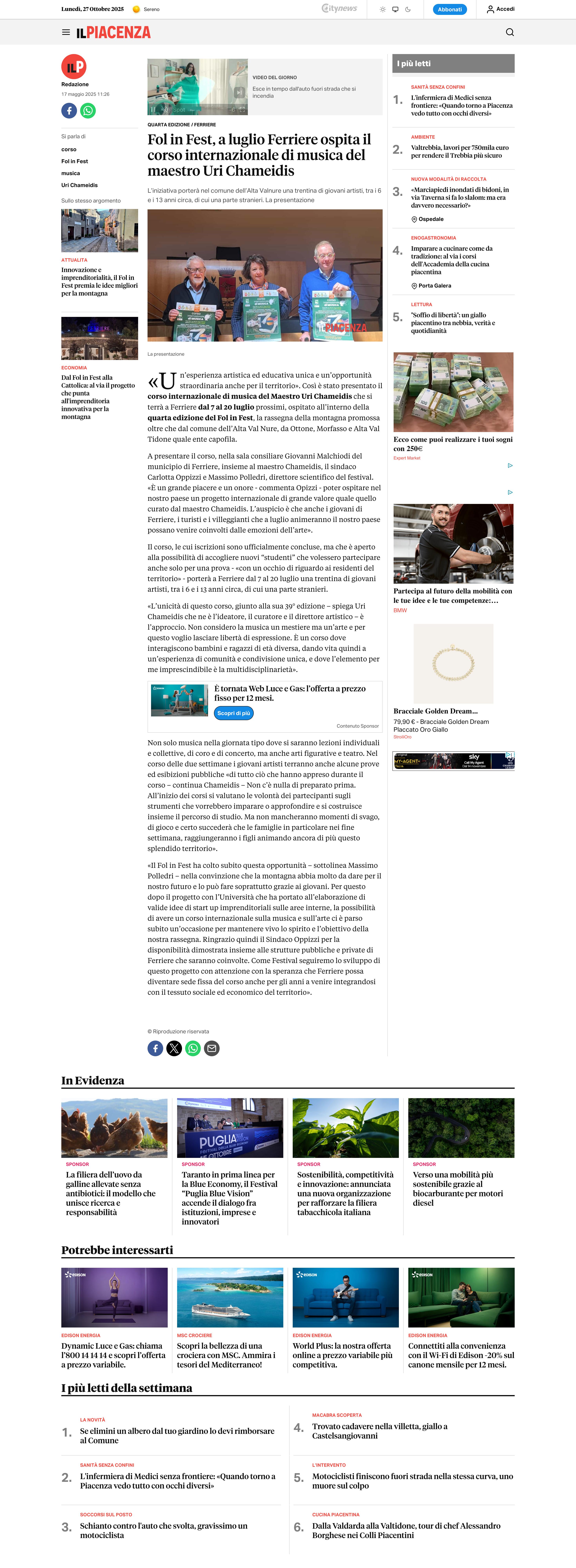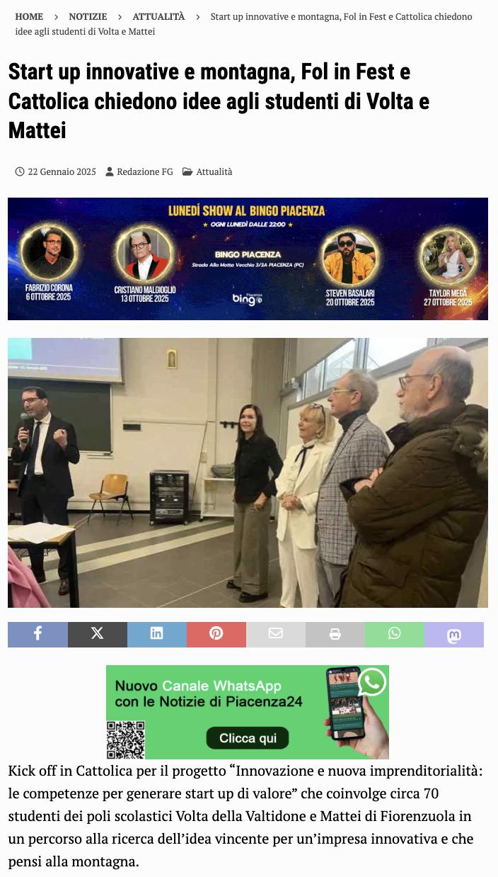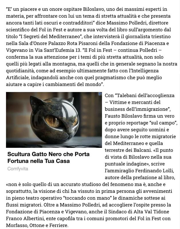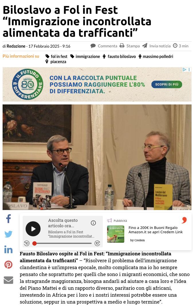 ALL’ACCOGLIENZA”, FAUSTO BILOSLAVO PRESENTA IL SUONUOVO LIBROVenerdi, 14.02.2025 Pag. .23Copyright (c)2025 Libertà, Edition 14/2/2025