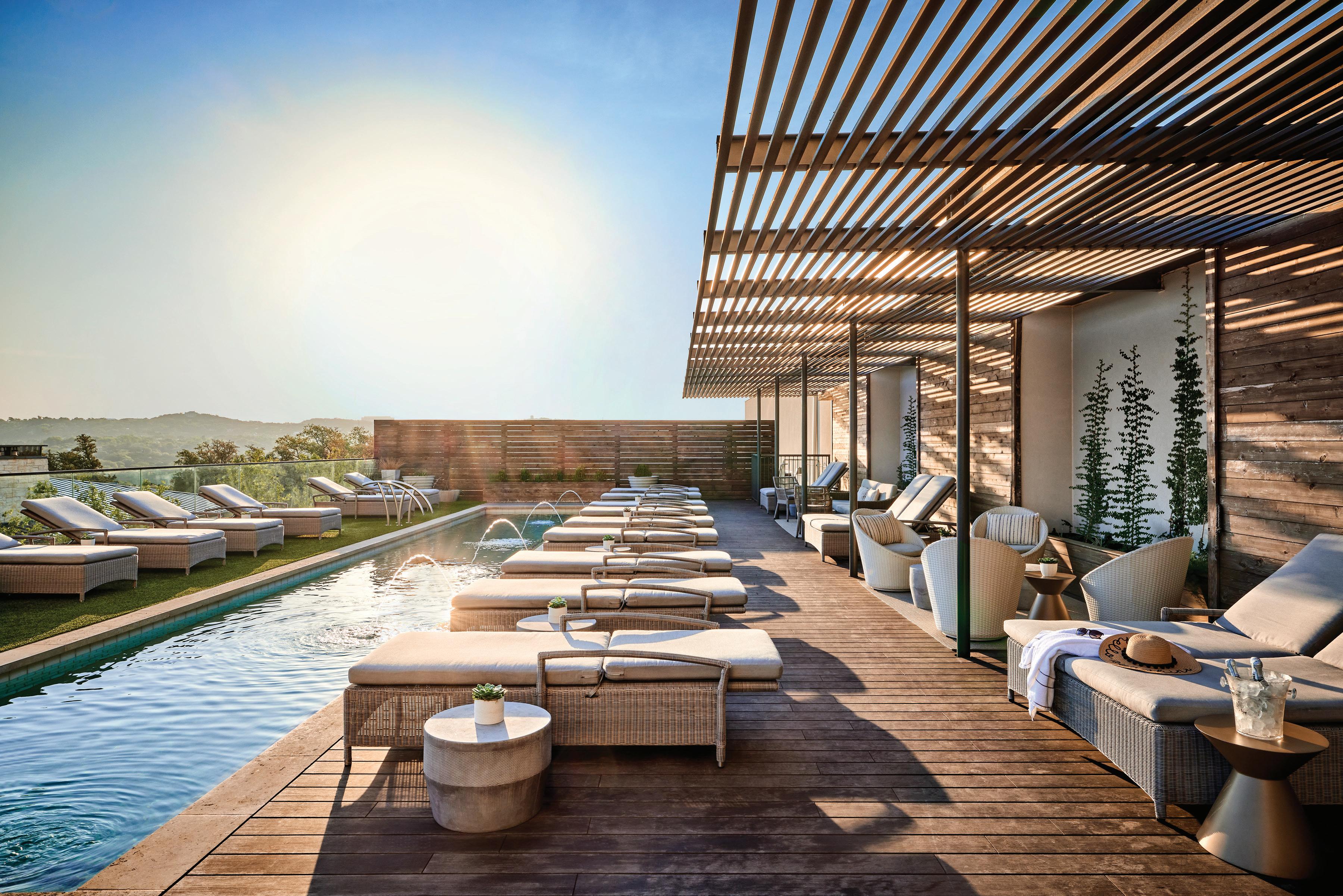 Relax at our private rooftop pool, a unique Austin destination overlooking the expansive Texas Hill Country.