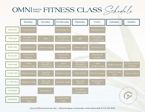 From yoga to bootcamp, there’s a class for everyone. Find your new favorite fitness class at our 33,000 square-foot fitness center. EXT. 4009. $30 per person. Reservations required.