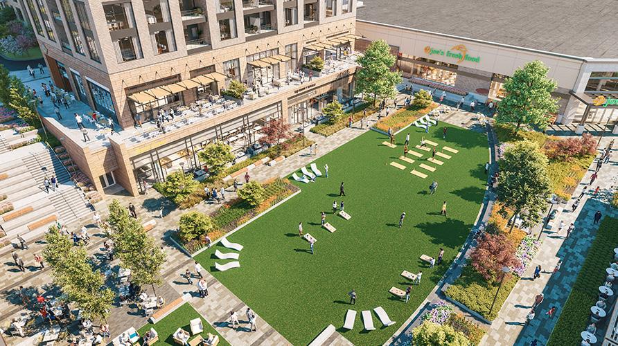 SHOP selected OMNIPLAN to reimagine this lackluster retail plaza built in the late 1970s and early 1980s. Located in Far North Dallas, the center was characterized by one and two-story commercial buildings containing an array of retail and office tenants. Once slotted for demolition in favor of a multifamily development, the center has found new life as a community destination. Central to the project is a 1.5-acre City Park, developed as part of a Public-Private Partnership with SHOP and the City of Dallas. An existing retail building was torn down to free up space for the park that includes a programmable central lawn, activated promenades, playground, and public art.