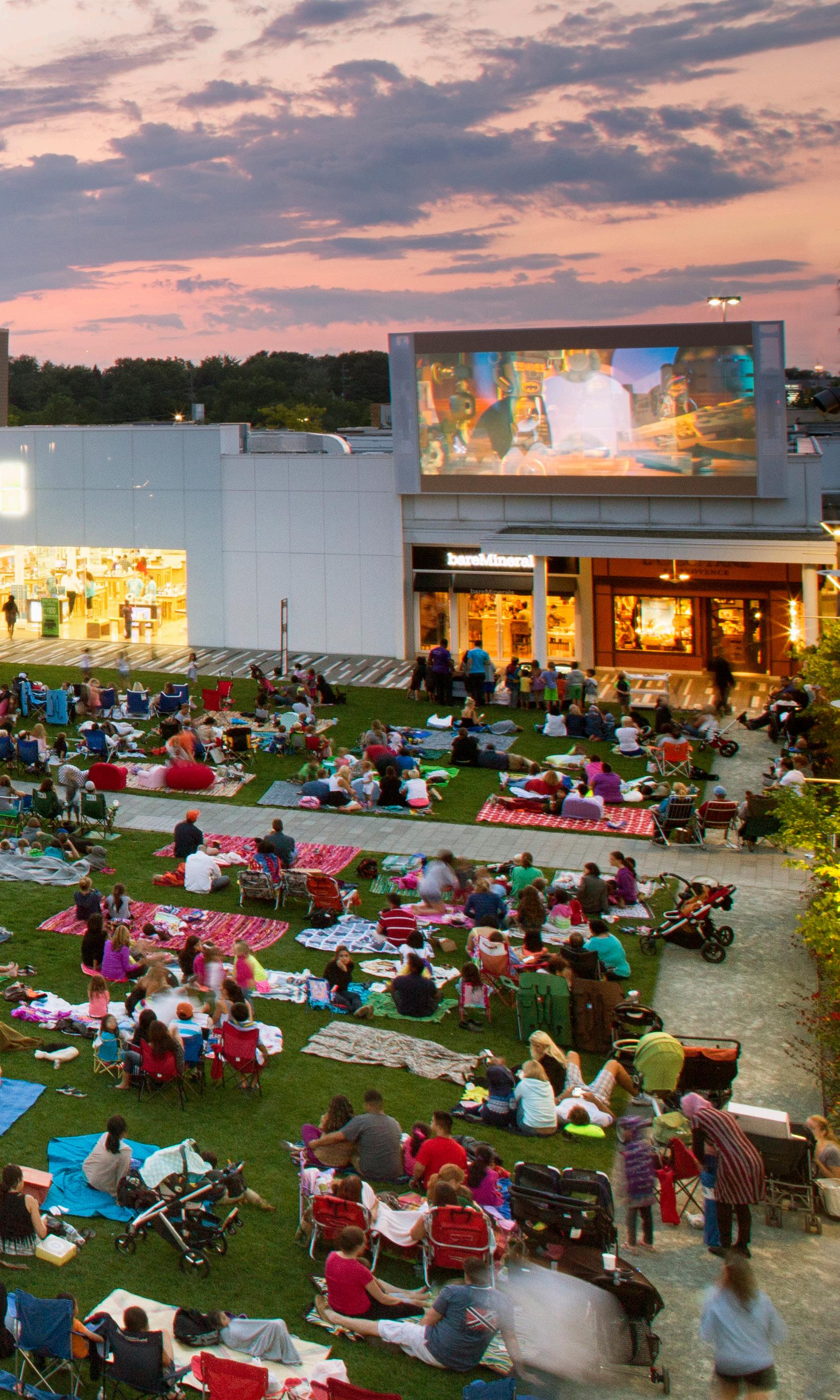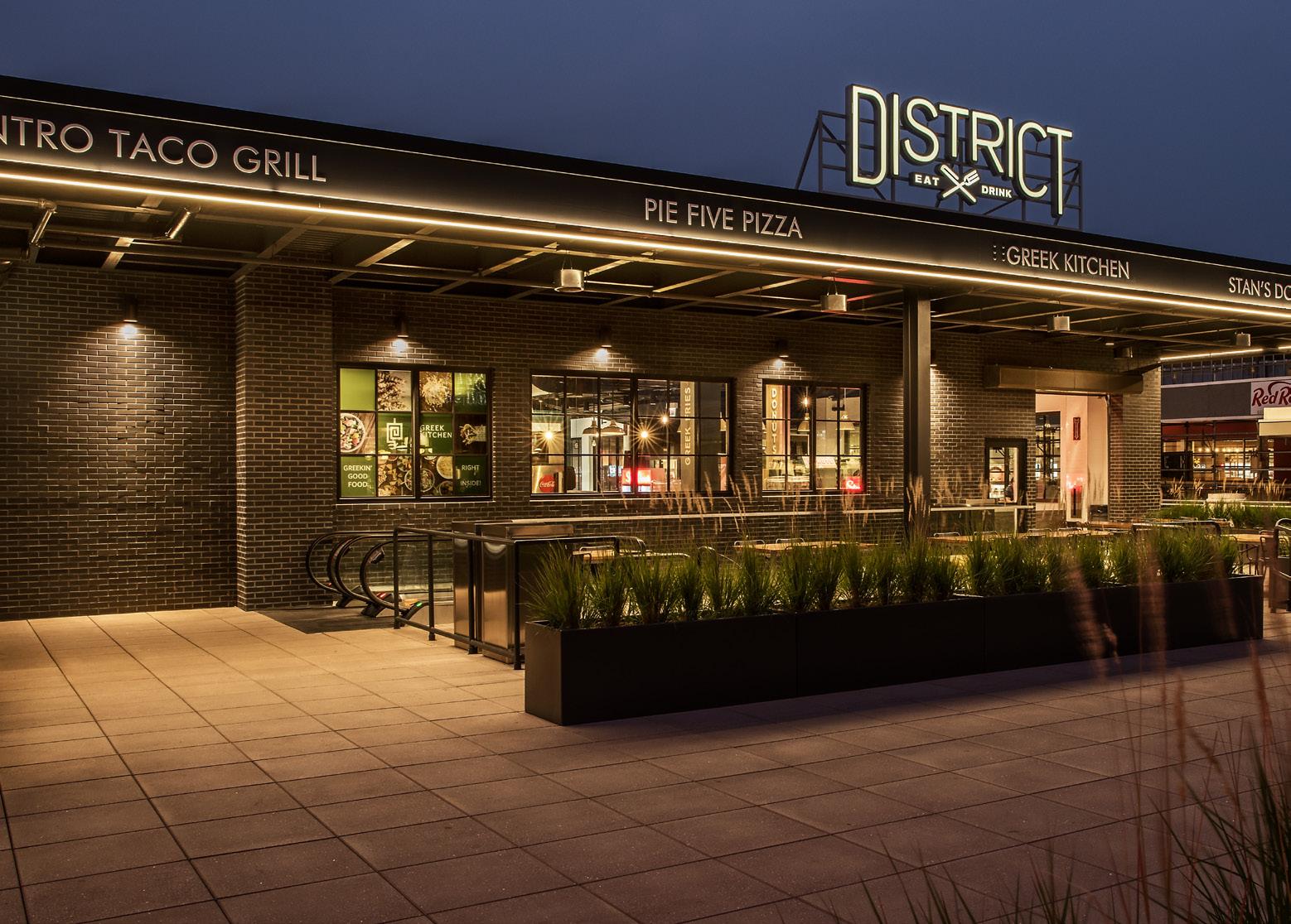 General Growth Partners (now Brookfield), the owner and developer, commissioned retail design experts OMNIPLAN to lead the charge in redesigning this premier center. The resulting design enhanced Oakbrook’s already elegant character by creating an atmosphere that is inviting and approachable and acts as a backdrop to the many activities in the space, from large planned events to informal gatherings. With the help of landscape designers, StudioOutside, the design extends the lush landscaping throughout the space and adds several pavilions to guard patrons from the harsh Chicago winters and allow them to enjoy the beautiful holiday season at Oakbrook. The design also incorporates a large common space to accommodate events and create a sense of community at the heart of the center. A second expansion included the addition of the AMC theatre and the District food hall.