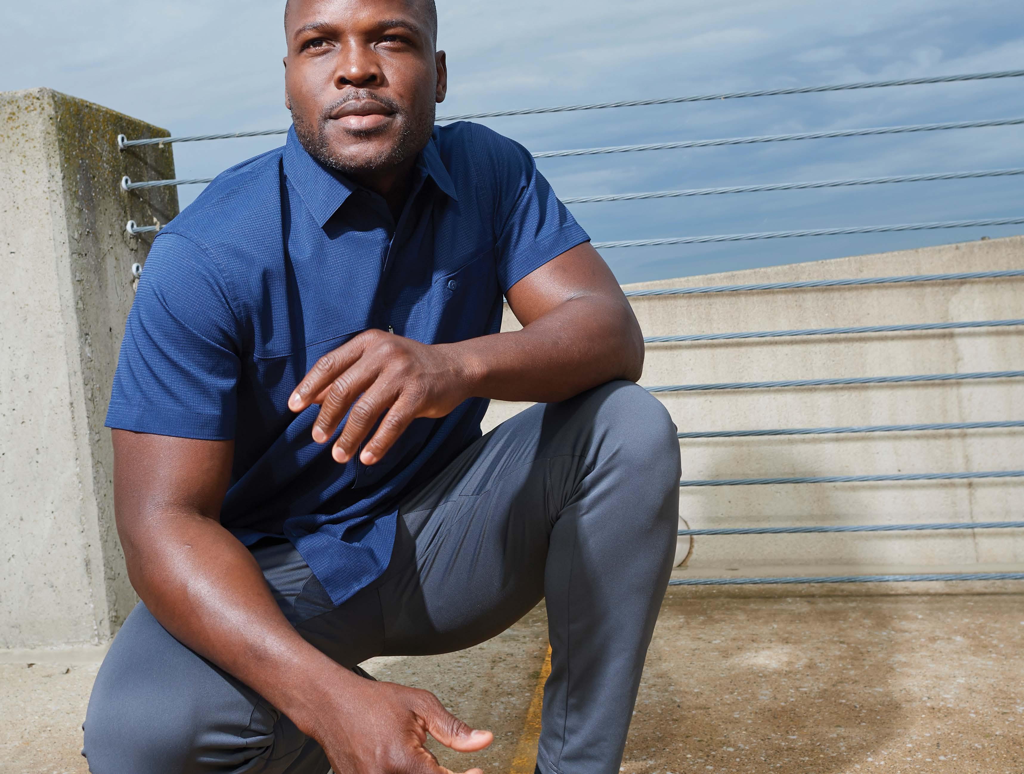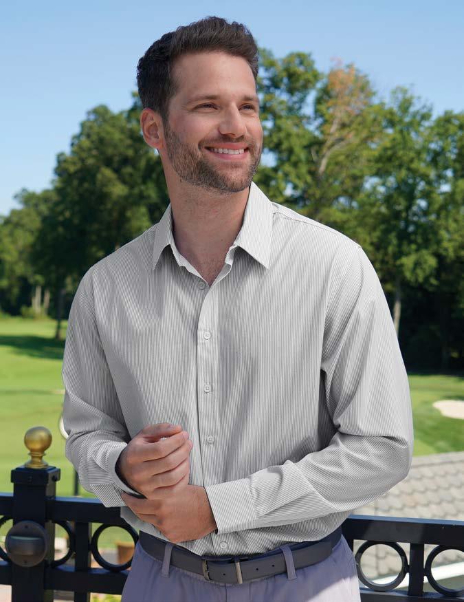 A refined and versatile piece made from 90% polyester/10% spandex. Moisture wicking and UPF 30+ rating delivers dependable performance to ensure all-day comfort in any setting.