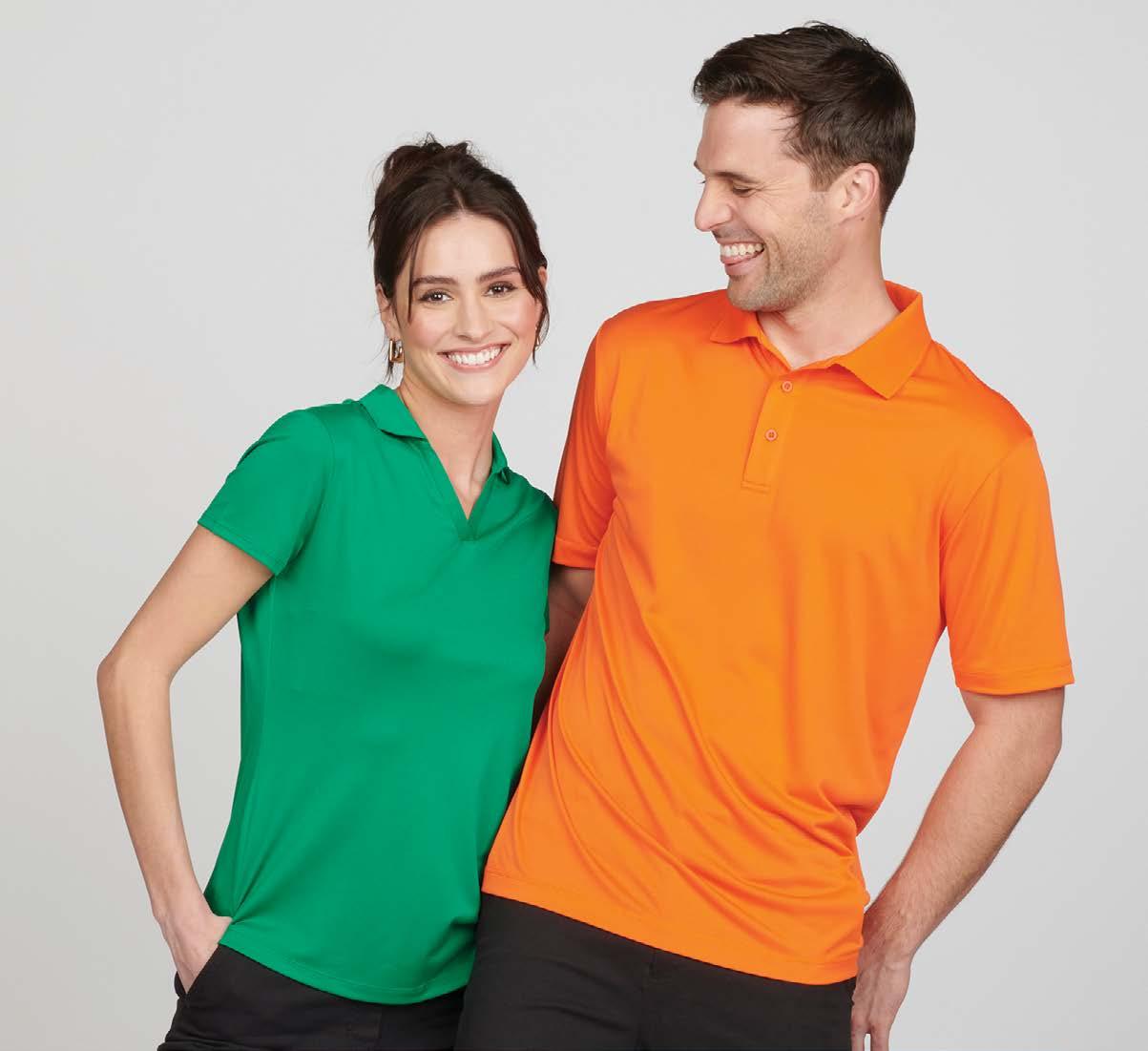 Made of easy-care 100% polyester pique. Moisture wicking, with antimicrobial and UV protection performance properties. Matching flat knit collar and heat seal label. Ladies’ style available. Sizes: XS-6XL