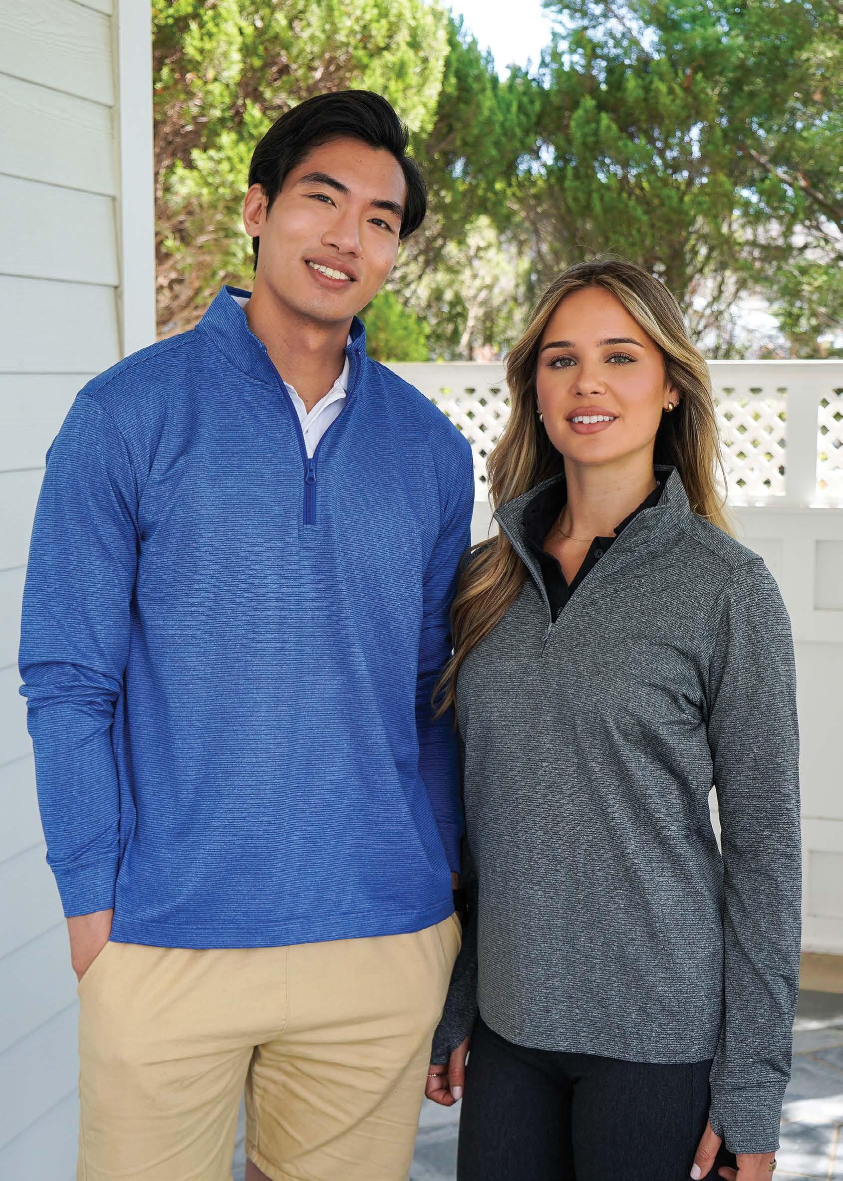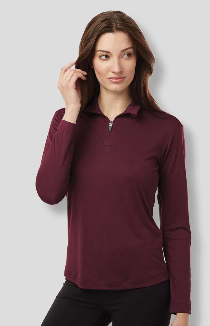 Step up your game with this premium 1/4 zip pullover made from a 91% polyester, 9% spandex jersey blend for lightweight comfort, performance stretch, and versatile style. Ladies’ style available.