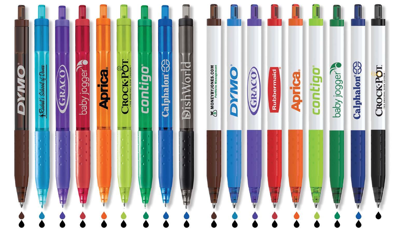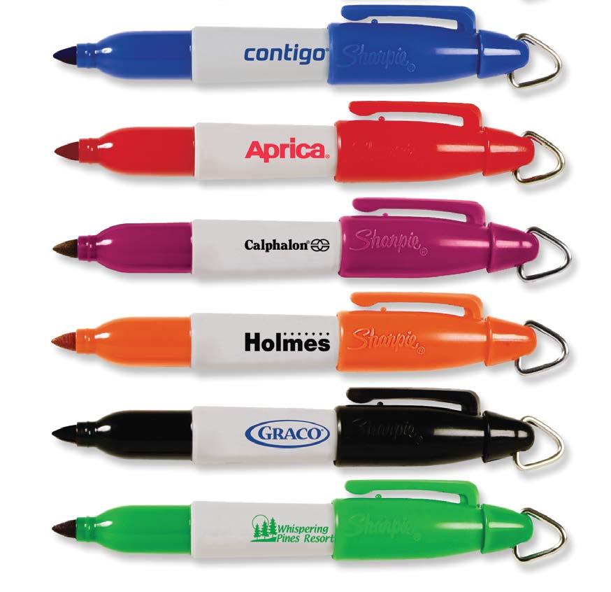 Permanent, fast-drying, acid-free, non-toxic ink. Ink color matches cap color. Metallic colors (additional charge) leave a brilliant sheen on both light and dark surfaces. Gray barrel. Fine point.