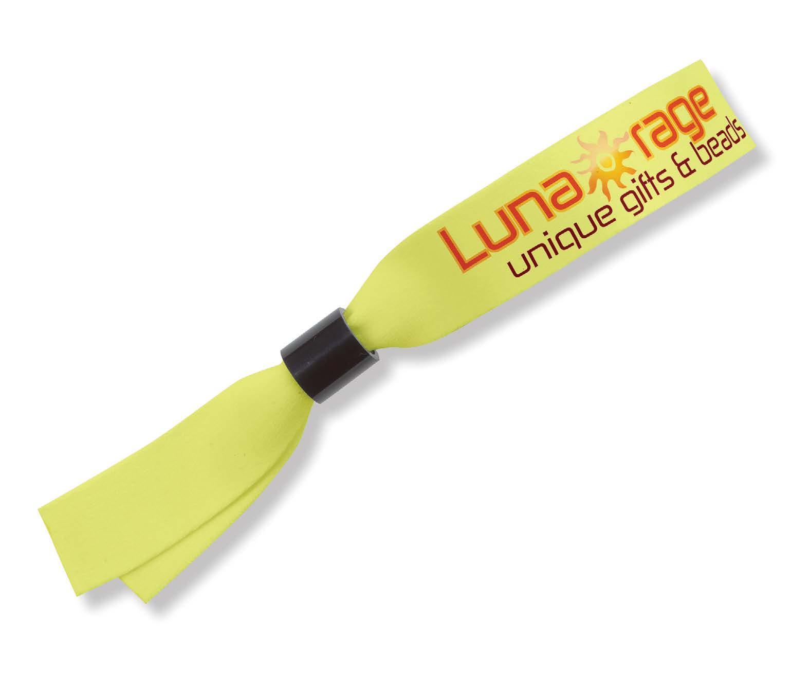 This dye-sublimated polyester wristband includes a durable plastic locking bead for secure wear, making it ideal for festivals, concerts, and VIP access.