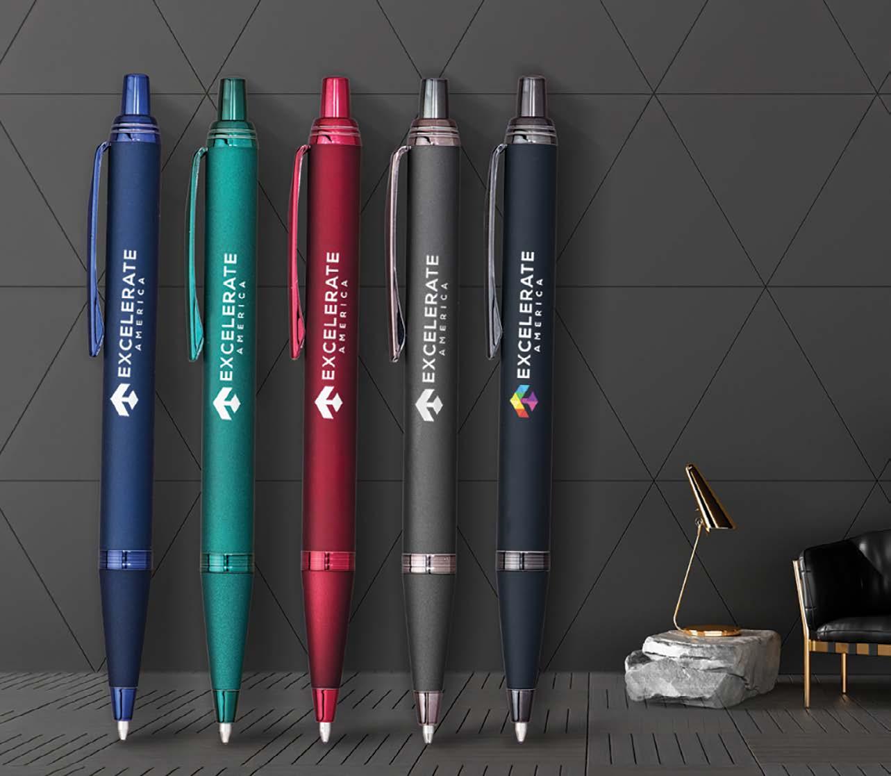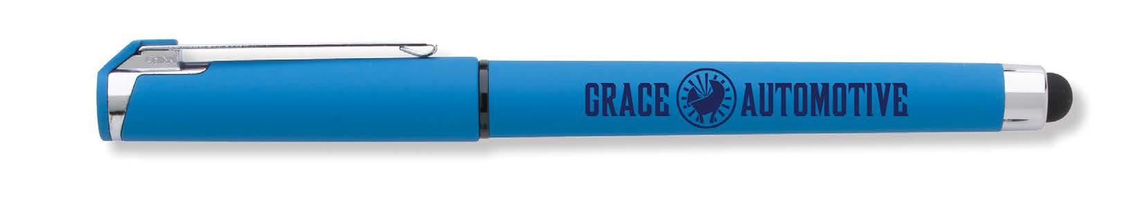 Made from recycled ABS, this fine point gel pen features a soft rubber grip with a crosshatch pattern, and fraud-resistant ink for eco-friendly, dependable writing. 5% of proceeds is donated to local United Way organizations. 57/8"L