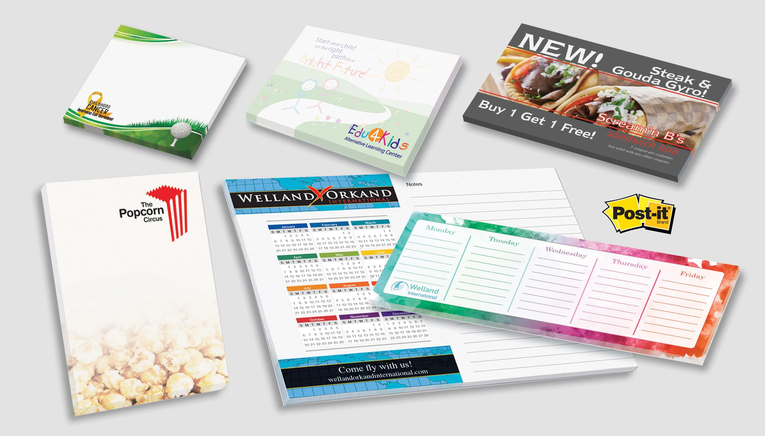 Post-it® Note Pads in Various Sizes, 25 or 50 sheets per pad Make your message stick by putting it on a Post-it® Note! Decorated with a four color process imprint on each sheet.