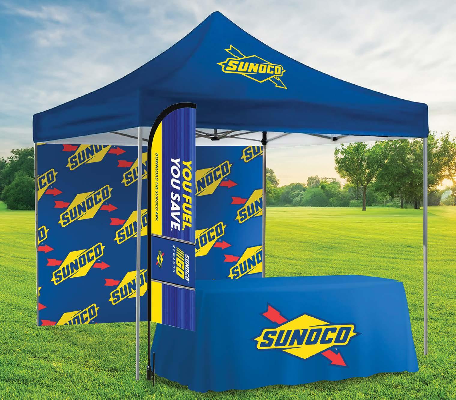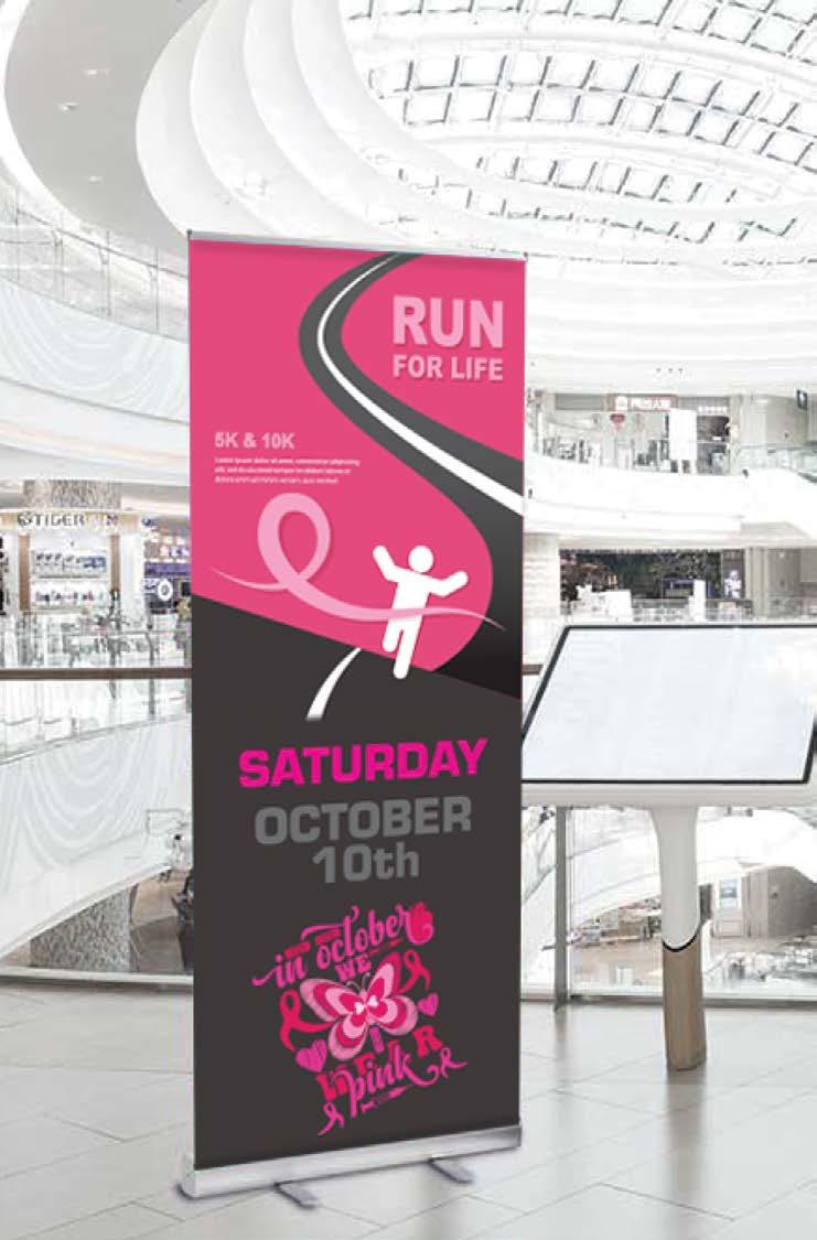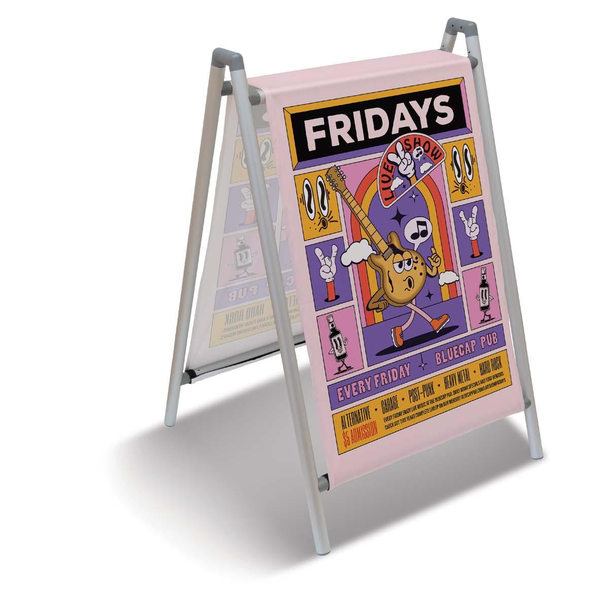 Sign printed on 18 pt. polyethylene-coated stock for weather resistance, are folded at the top and sealed along the edges with glue.