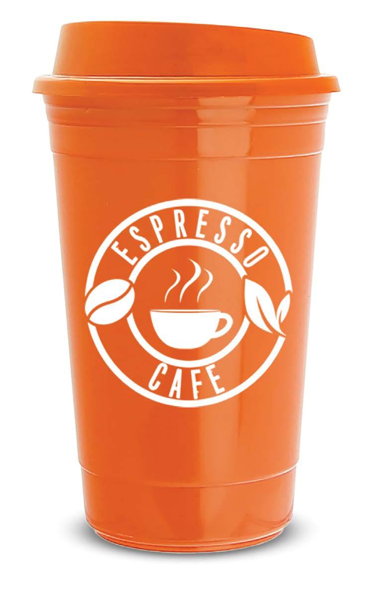 Made from post-industrial recycled PP, this double wall travel cup offers a sip-through lid and fits easily in most car cup holders. 16 oz. 61 4"H