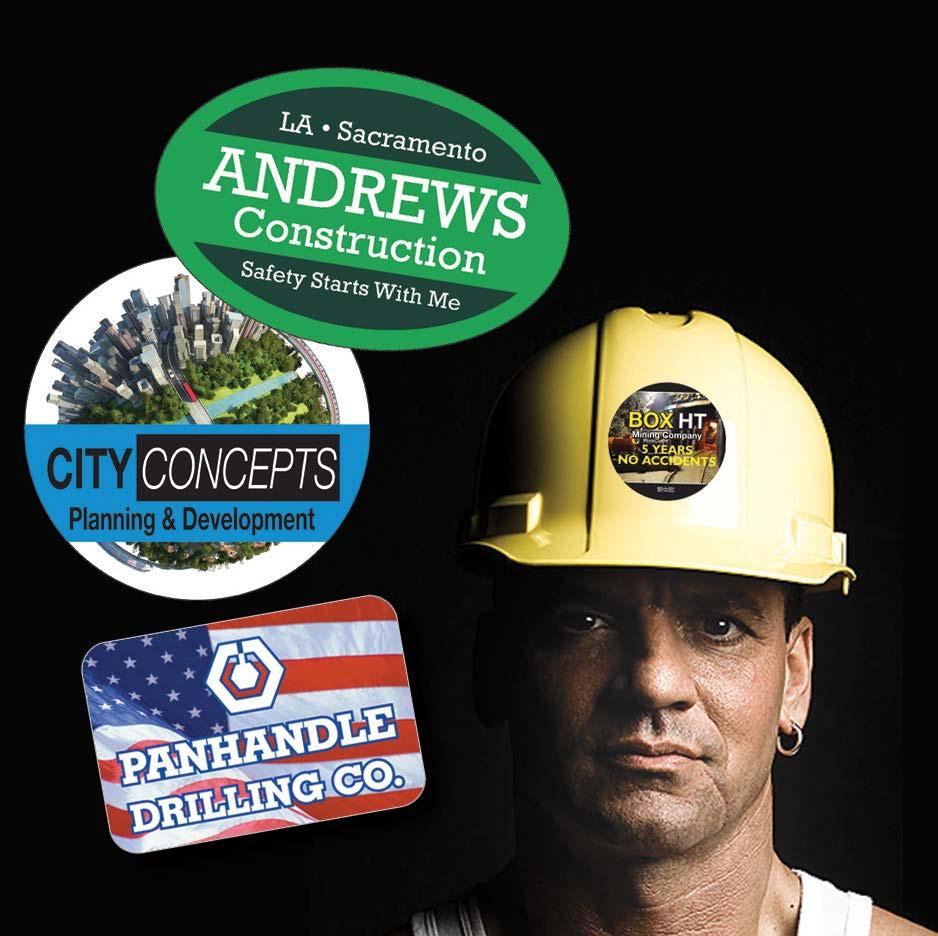 Hard hat decals identify companies and are great for employee recognition. Use them to mark equipment too.