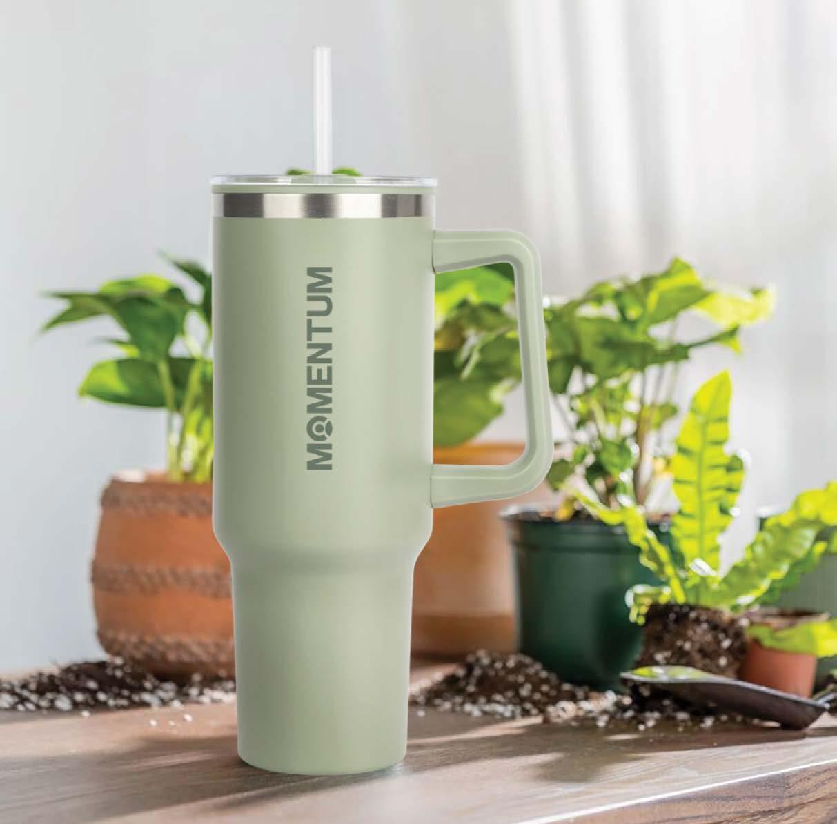 Double wall stainless steel tumbler with dual-purpose threaded lid with matching swivel closure, soft straw, and matte finish. 16 oz.
