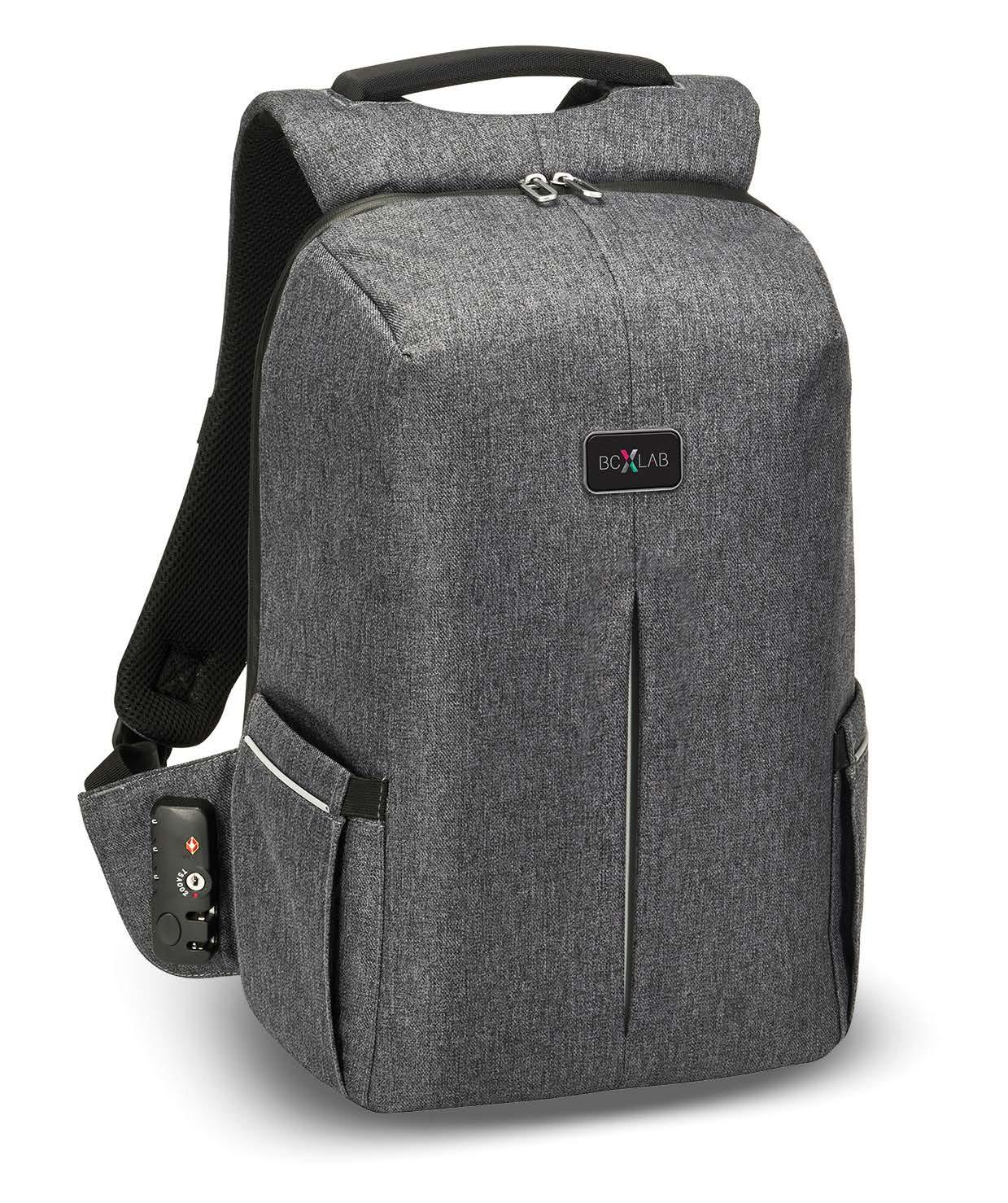 Versatile backpack constructed of water repellent material with multiple pockets, USB port, sturdy trolley loop and TSA locking zipper. Holds up to a 17" laptop.