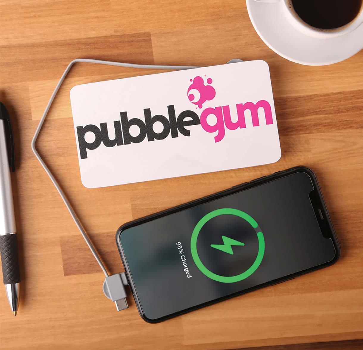 Power through your day with this 5,000 mAh powerbank made from recycled plastic. Features wireless and passthrough charging with a built-in 3-in-1 cable for complete charging versatility.