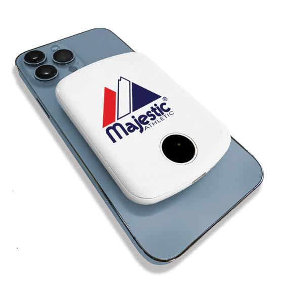 Compact 15W magnetic wireless charger with LED display and builtin protection against over-current, over-voltage, over-charge, and over-discharge.