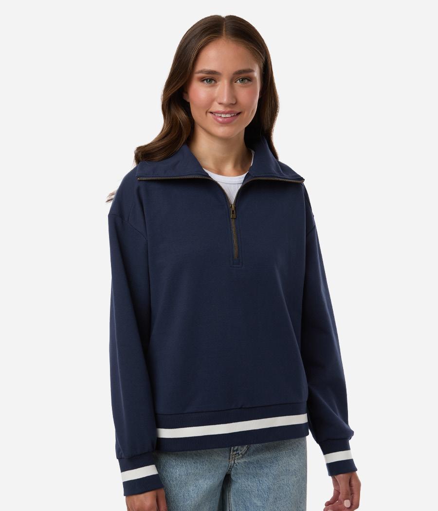 Layer up for laid-back luxury. The retro quarter-zip is the perfect trendy piece in any resort gift shop. Pair it with sweat shorts, a tank for poolside comfort, and a travel pouch for necessities. This lineup blends casual luxury with all-day versatility—perfect from sunrise to sunset