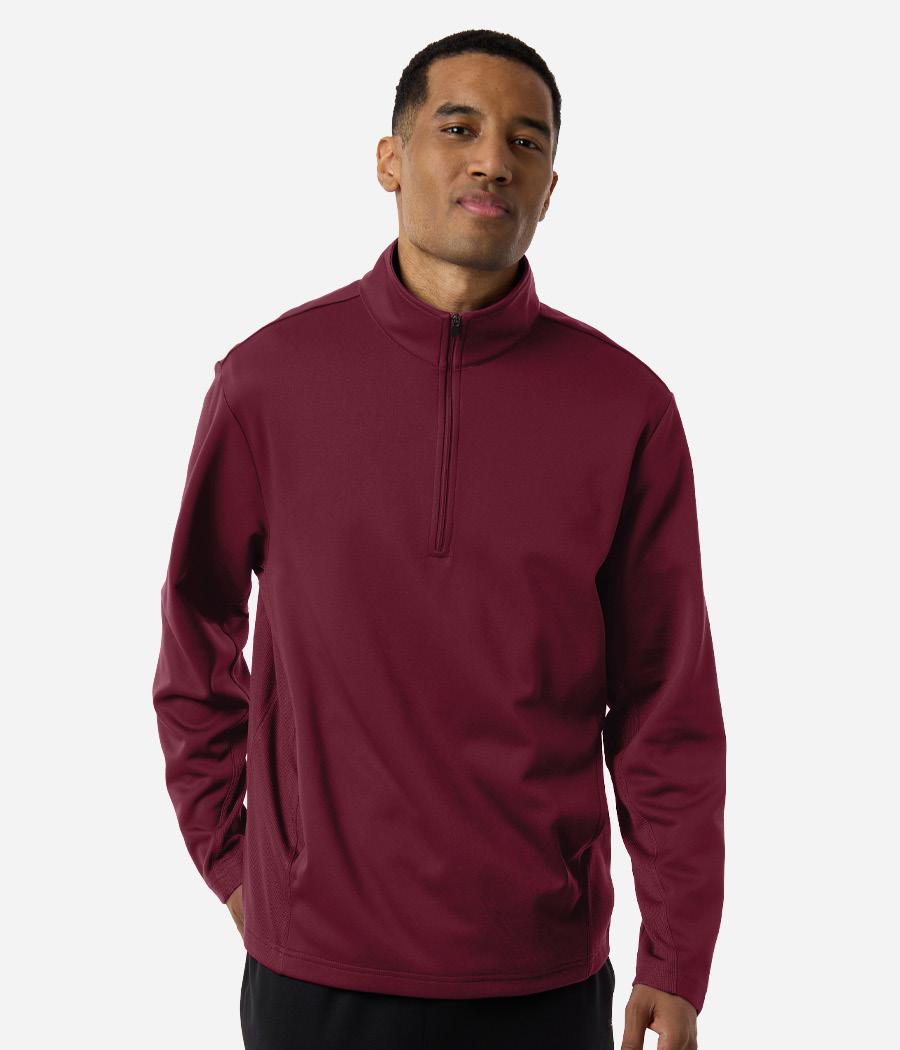 Elevate the everyday uniform. The jacquard knit jacket quarter-zip and polo for adaptable style, pair it with with a feature-rich Nomadix backpack with tons of compartments for a laptop and essentials. This polished ensemble blends professionalism and team unity for on-the-go teams.