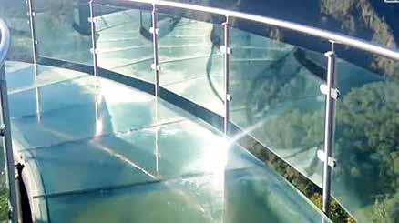 Detrás de este fascinante mural, se encuentra el puente de cristal que se eleva sobre la Barranca de los Jilgueros, que te permite observar y sentir en cada paso la enormidad que acompaña al valle. Este Mirador de la Barranca, como también se le conoce, es único en su especie y te hará sentir como en las nubes, brindándote una sensación de libertad, porque al ser totalmente de cristal el piso te genera sensaciones increíbles. Desde este lugar se puede admirar la inmensidad de la Sierra, también las pocas casas escondidas en la espesura del Valle y el río Cola de Caballo.