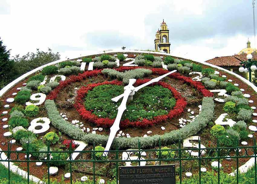 Este reloj cuenta con dos carátulas de 5 metros de diámetro y tiene 9 melodías diferentes para marcar las horas según la época del año. Sus creadores, son los mismos del reloj del Parque Hundido de la CDMX.