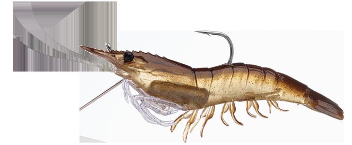 The LIVETARGET soft plastic Rigged Shrimp has taken the US saltwater market by storm. Shrimp are the single most common forage for all saltwater game fish. The Rigged Shrimp is designed to mimic a live Shrimp swimming in a forward motion. It can be cast and retrieved or fished under a popping cork. A built in rattle generates the ‘clicking’ sound Shrimp make while swimming. Four per package.