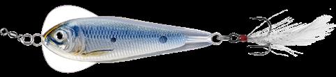 The Flutter Sardine mimics a Sardine or Shiner fluttering in distress. The Inner-Core produces a vibrant flash, the feather hook creates drag and holds the hook in the ideal strike position when falling. Lift and drop to create a falling shimmy action or snap the rod tip to impart an erratic twitch action. The result is a strobing flash, that triggers predatory game fish in saltwater.