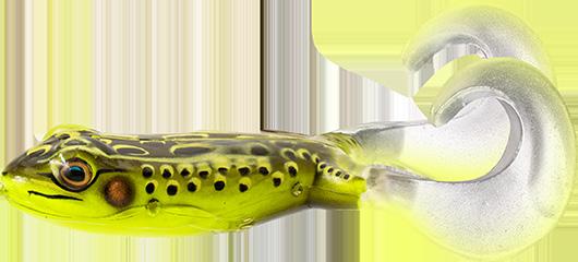 The LIVETARGET Ultimate Frog mimics a vulnerable frog exposed in open water, ready to flight. Pull it to replicate the stride of a fleeing frog. Designed to sit in the water like a resting frog, angle specific. When twitched or pulled, the lure strides forward and the legs stretch just like a frog thrusting forward. The legs hinge at the hips, creating an anatomical stridelike action. The body is made from ABS and the legs