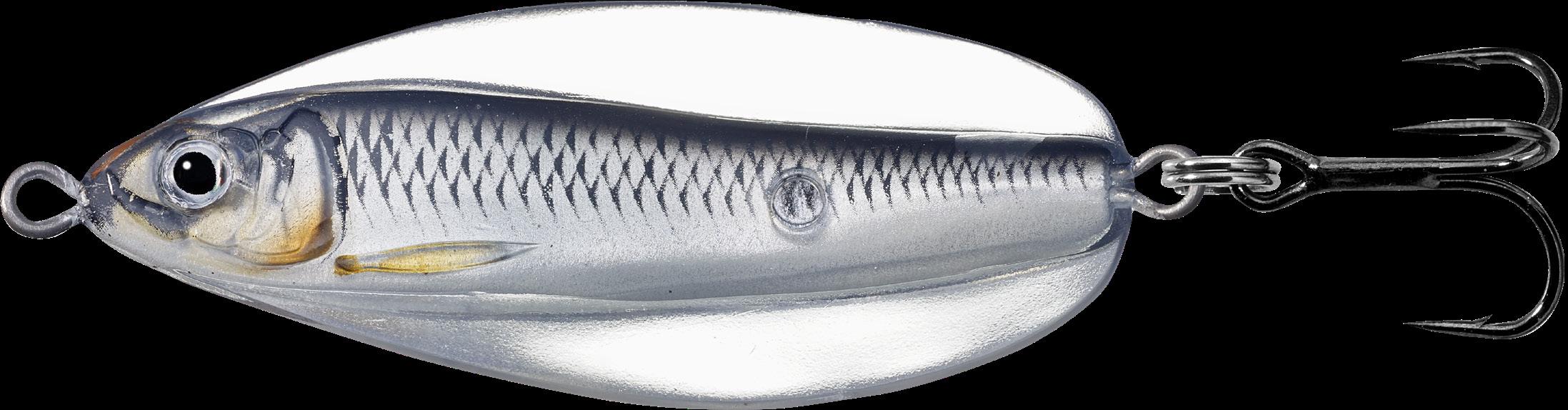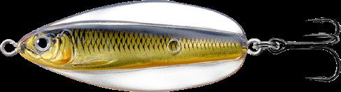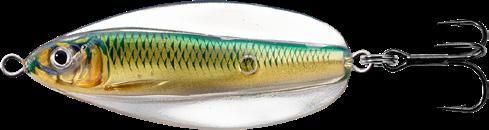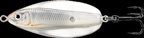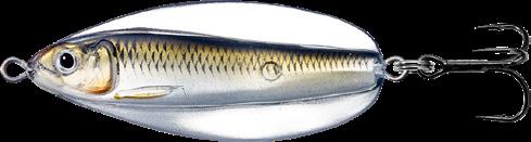 LIVETARGET has bridged the tradition of old spoon craftmanship with a new generation of tech-savvy production to create the first-ever anatomically precise spoon; The Erratic Shiner. The lure has a life-like Inner-Core with a pulsating vibrant flash, an Exo-Skin that produces an erratic wide-wobble, darting effect imitating an injured baitfish. Designed for long casts; also excellent for trolling.