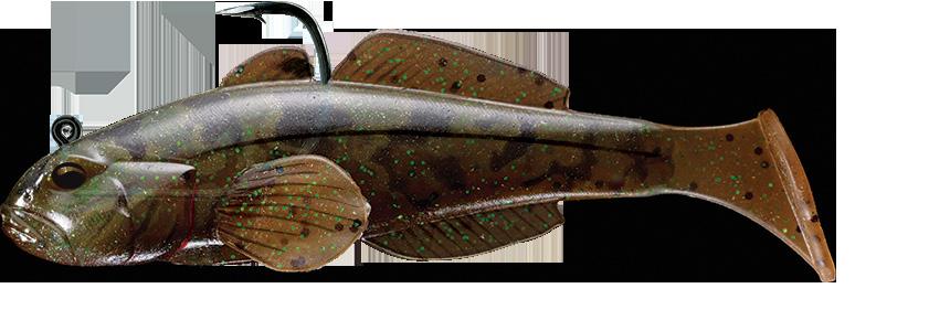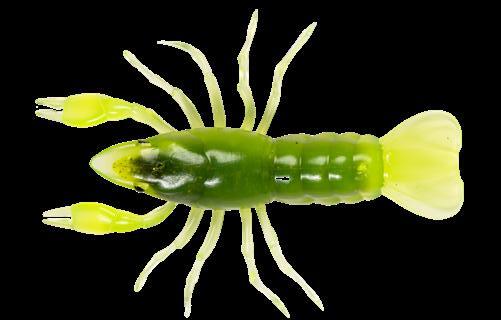 Mimics a vulnerable shrimp exposed in open water, falling to the security of bottom cover. Twitch it to create an erratic action or wind it slowly to generate a thumping pulse. The body is made from ABS plastic and is buoyant. Inside the body cavity is a round weight that generates a light clicking sound when the bait is in motion. The legs and swimmerets are made from TPE soft plastic. The swing weight is strategically designed to rock the bait off balance,