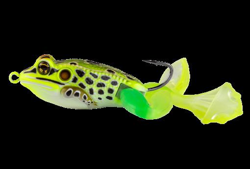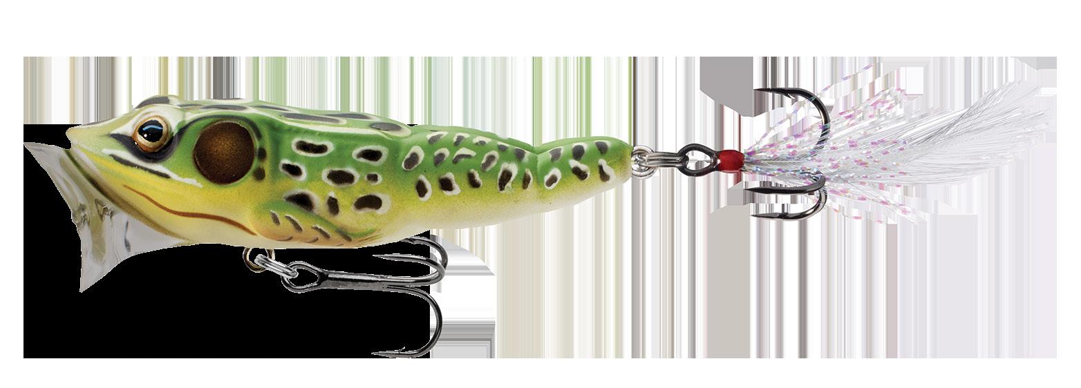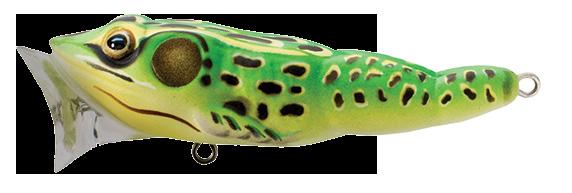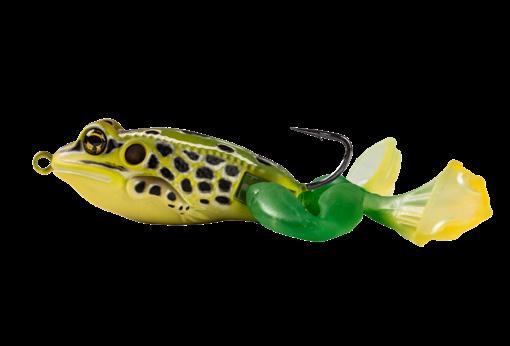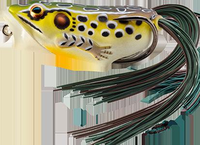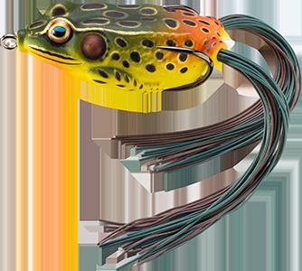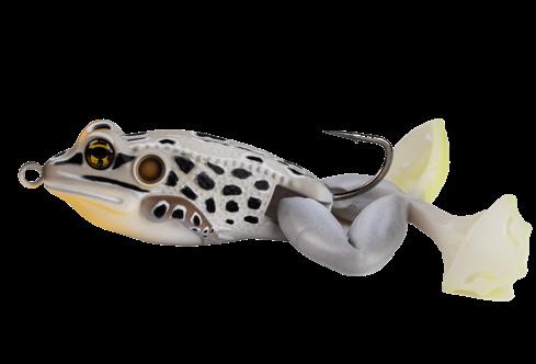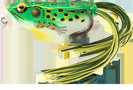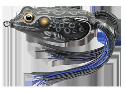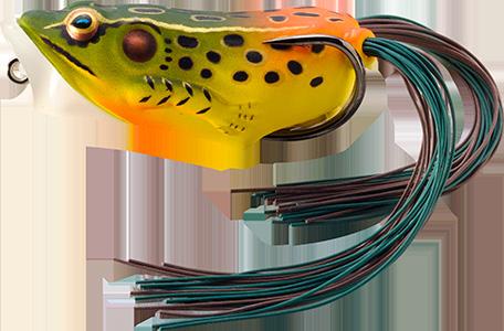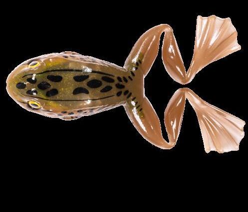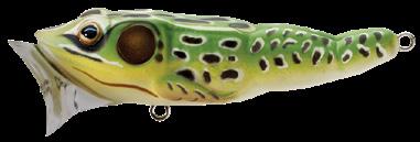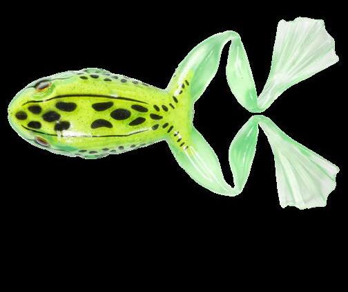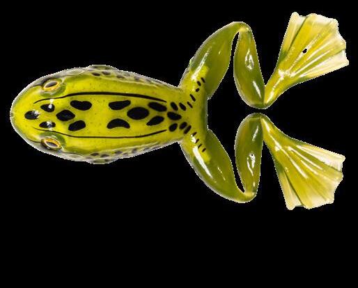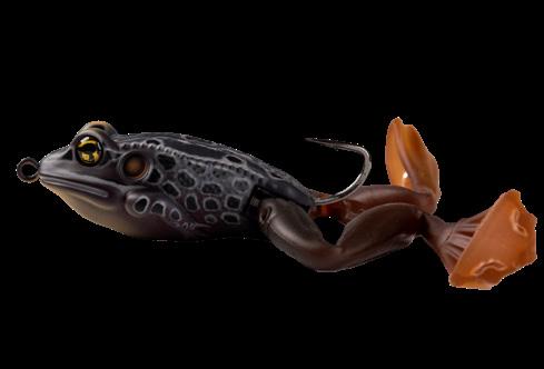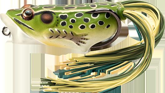 durability. As an unrigged topwater soft plastic frog, LIVETARGET’s latest frog lure maintains its stride action at any retrieval speed, displaying life-like leg pushes on the surface. Rig with a single wide gap Mustad EWG Infiltrator hook or Mustad double frog hook for a weedless presentation to flip toward lily pads or under docks when fishing for top-feeding bass and pike.