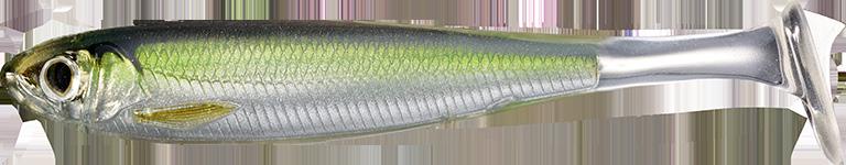 The LIVETARGET Sonic Shad mimics a young shad fluttering in distress. The profile of the inner-core produces a life-like strobing flash, attracting game fish from a distance.