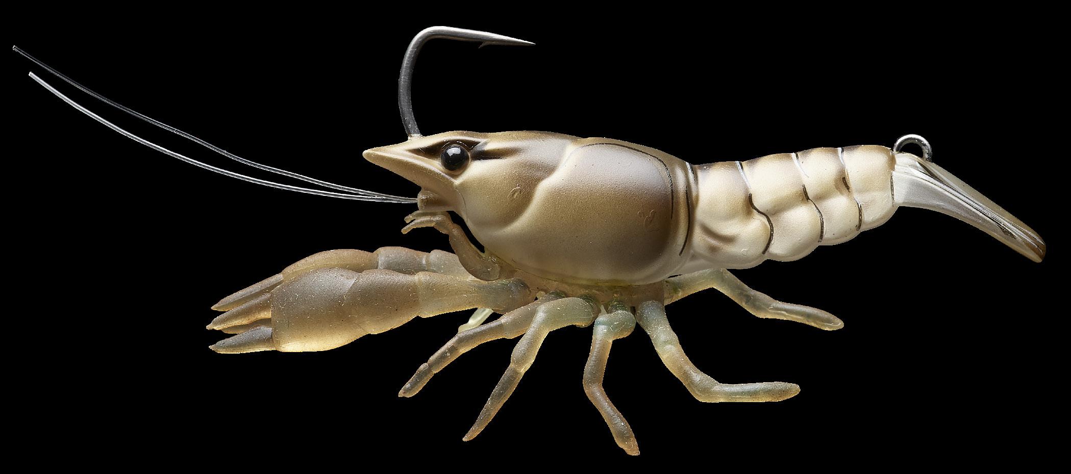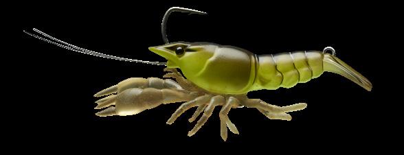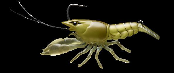 hook, with the claws and legs floating to entice a bite, or present on a Texas rig with a bullet weight or jig head. By folding the tail under the hook, the bait displaces more water during retrieval. LIVETARGET’s latest take on the Crawfish lure is an ideal soft plastic for targeting Bass, Pike, Perch and other bottom feeding freshwater predators.