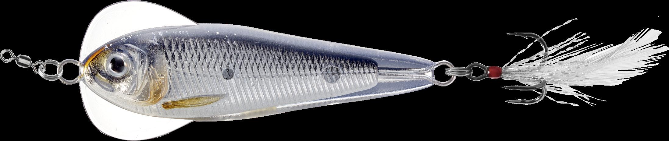 The Flutter Shad mimics a Shad or Shiner fluttering in distress. The Inner-Core produces a vibrant flash, the feather hook creates drag and holds the hook in the ideal strike position when falling. Lift and drop to create a falling shimmy action or snap the rod tip to impart an erratic twitch action. The result is a strobing flash, that triggers predatory game fish in freshwater.