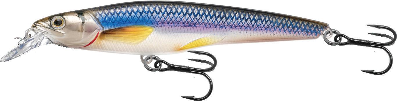 Rainbow Smelt are common forage to Northern game fish such as Walleye, Zander, Salmon, Trout, and Bass. The Jerkbait hosts a weight transfer, suspends and has a deep ‘knock’ sound. The Jerkbait is available in shallow and deep dive models and is ideal for casting or trolling.