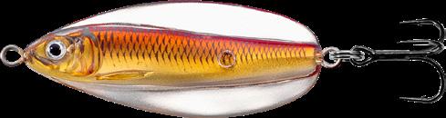 The Golden Shiner Rattlebait is a must have for every tackle box. The internal composition generates a loud rattle and is perfectly balanced for a yo-yo style retrieve. Virtually all freshwater game fish, including Bass and Pike will eat this lure. For a winter Pike bite, use this bait with a vertical drop through the ice.