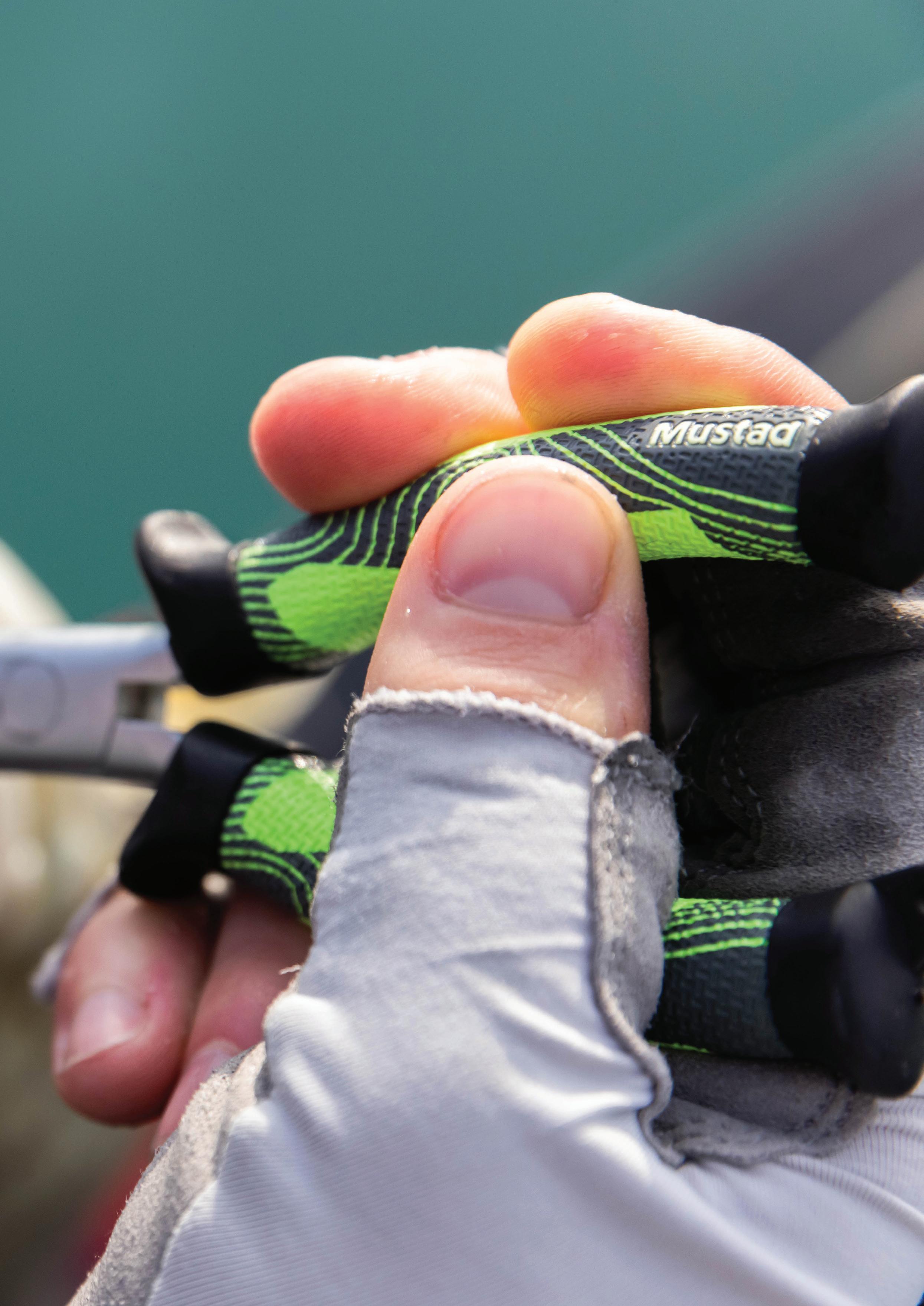 Lightweight and durable fingerless gloves combine protection with dexterity. Durable double stitched, soft palm pads for added grip. Exposed fingers for ease of rigging baits and tying knots. Velcro wrist strap for secure fit.