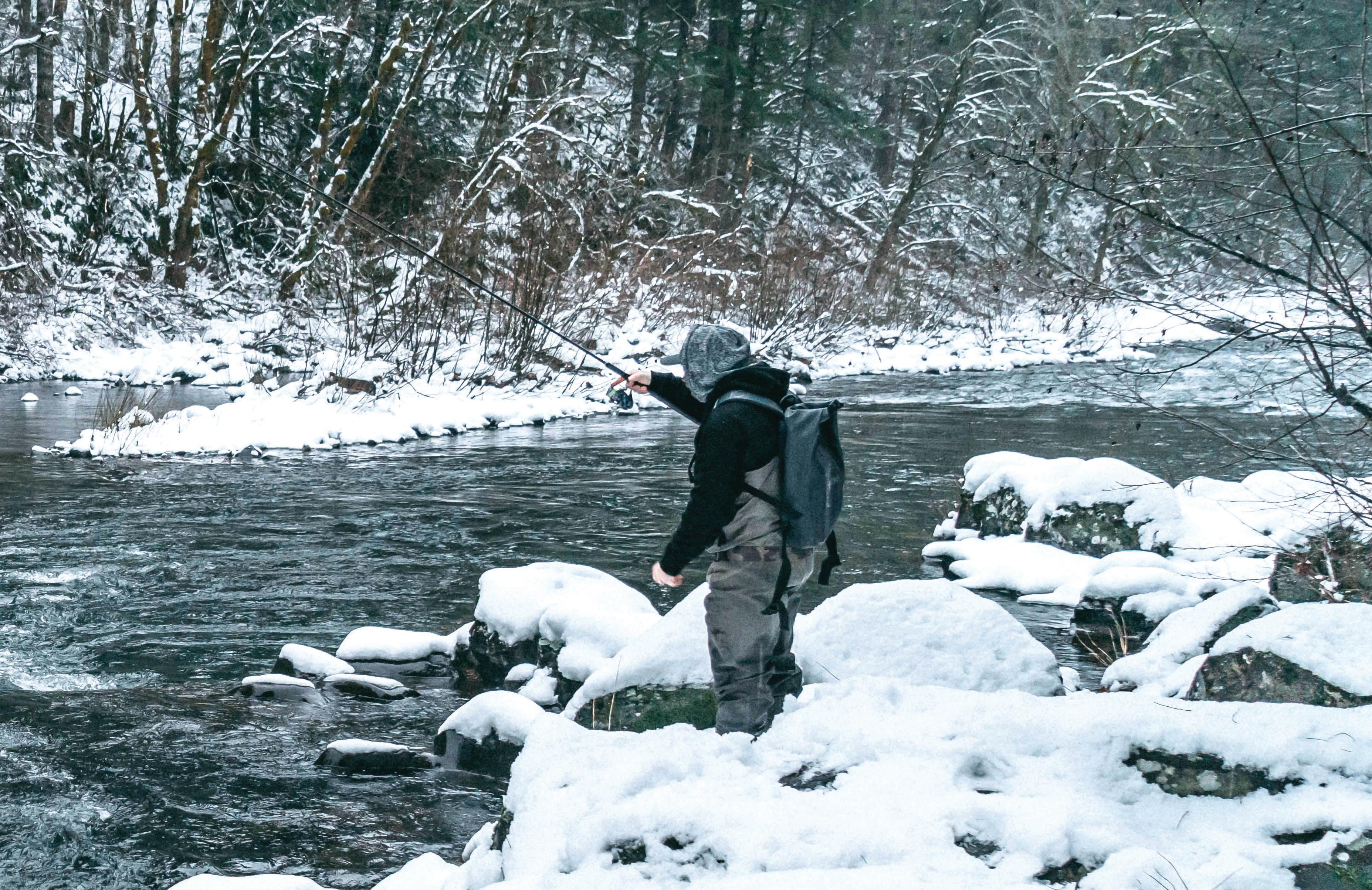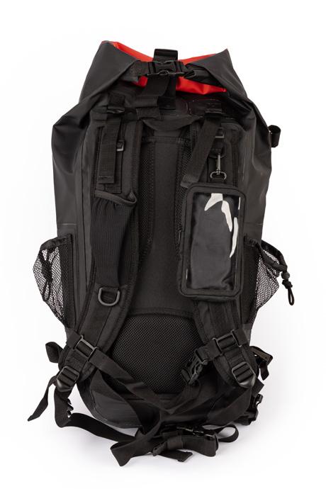 Roll-top backpack with space for clothing, electronics and all your fishing gear. Made of weatherproof PVC. 30L capacity.