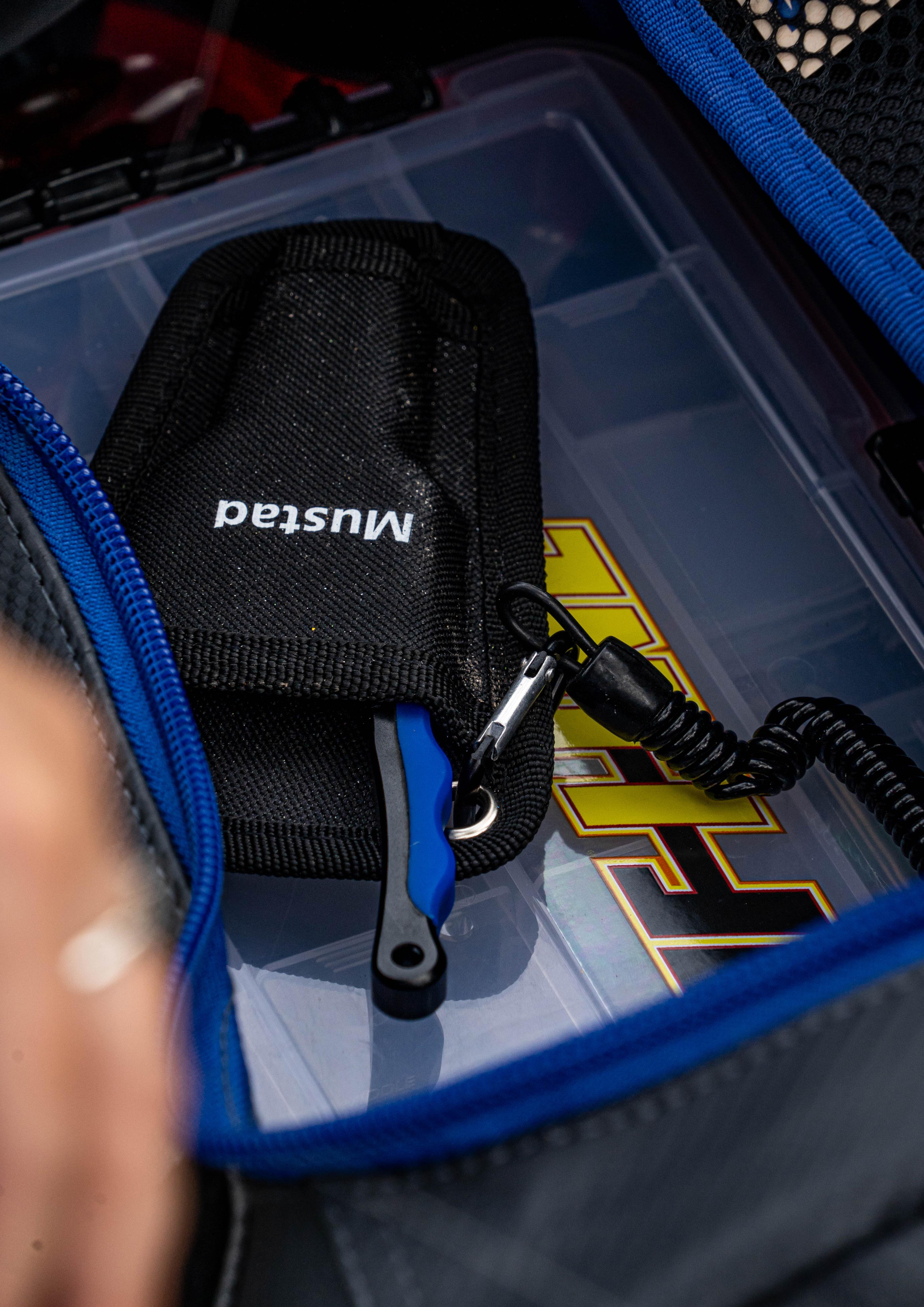 Easily clip off excess line after tying up rigs with Mustad’s retractable clippers. Once the kit is clipped onto a belt loop, the clippers find their way back home after a quick clip. Perfect for cutting line.